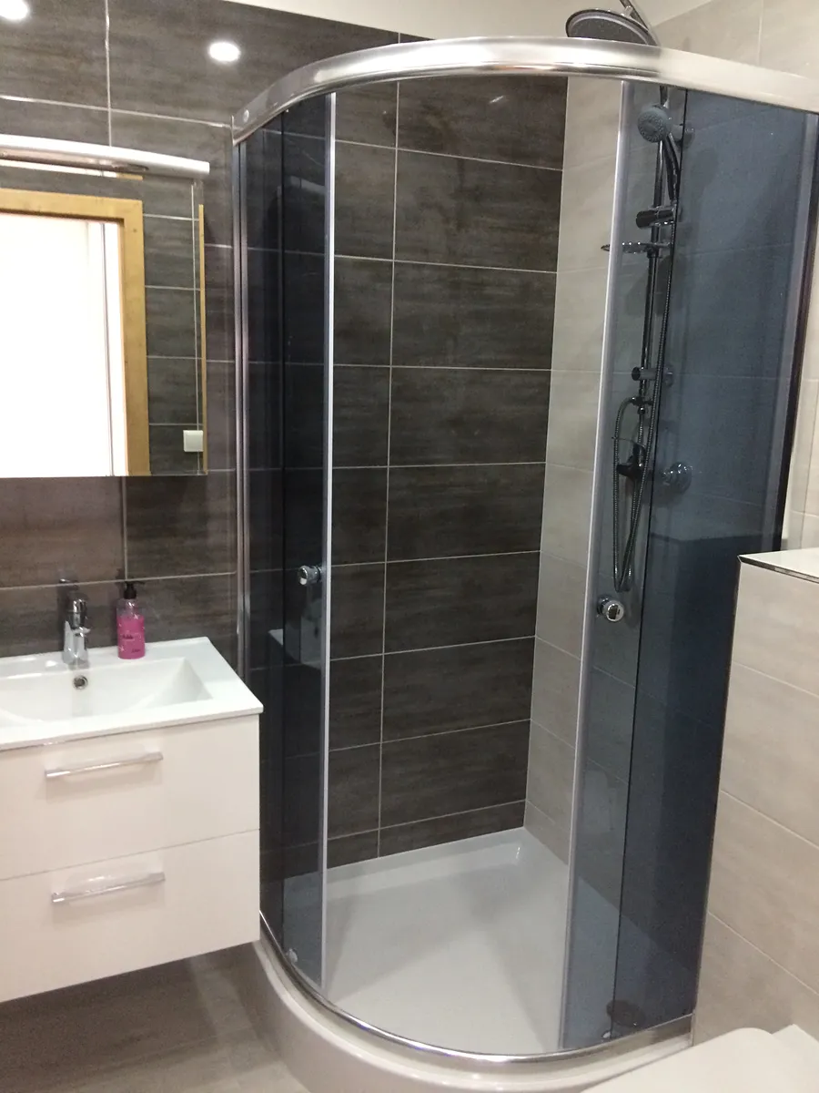 Dispozice a vybavení bytu: Kuchyňský kout se spotřebiči (lednice, varná deska, digestoř). Velkou výhodou je klimatizace. Dále je v pokoji vestavěná skříň, stůl, 2 židle, Samsung Smart TV, pohovka, konferenční stolek, postel s kvalitní matrací s polštářem, přikrývkou, plachtou a povlečením. Koupelna se sprchovým koutem a WC.