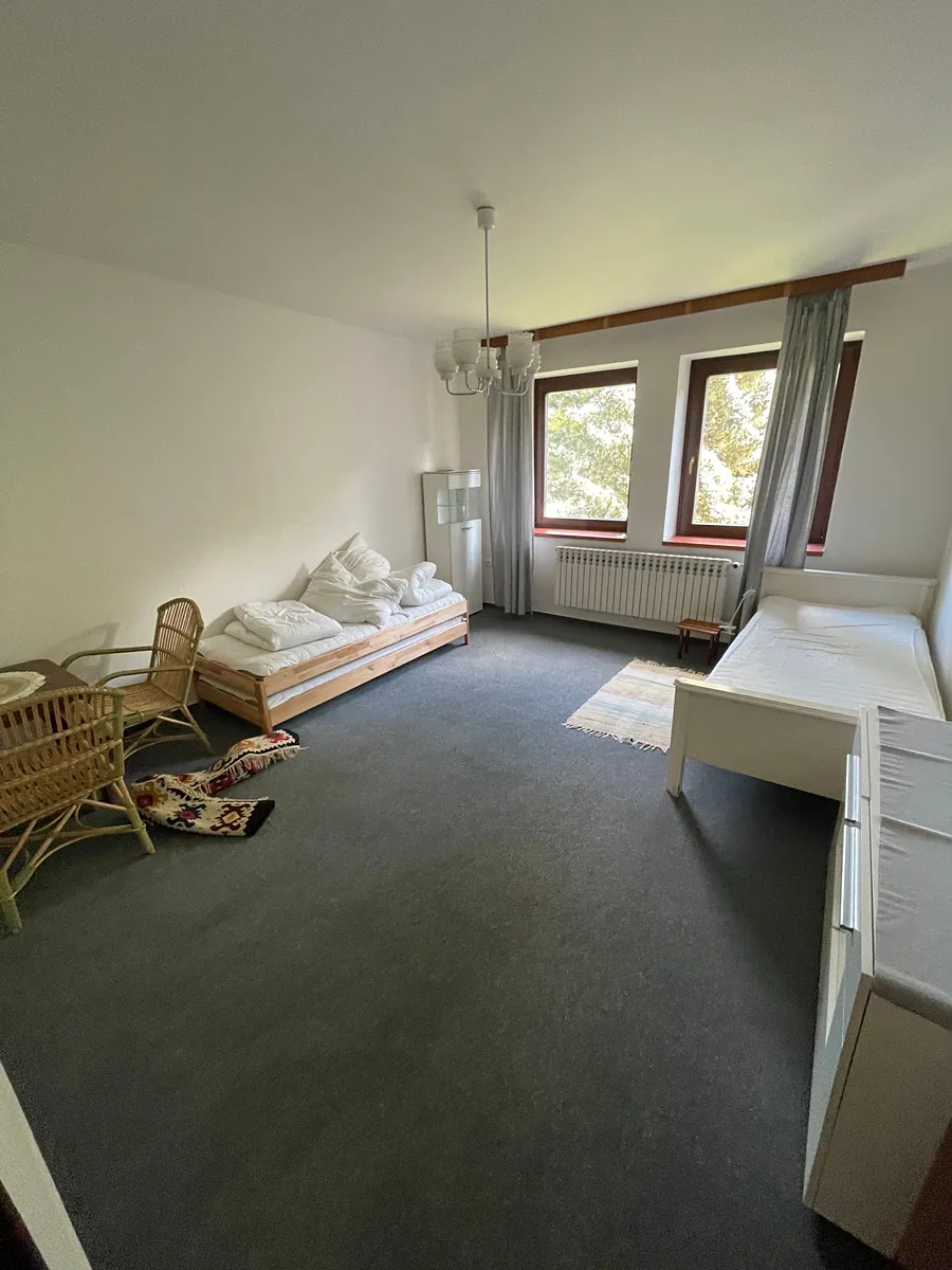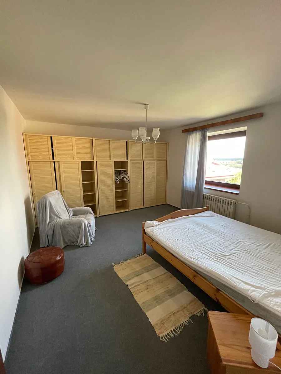 Prostorný byt přímo u lesoparku v druhém patře rodinného domu se třemi byty. Byt je zařízený a majitel by uvítal, kdyby většina nábytku v bytě mohla zůstat. V kuchyni není pečící trouba a lednička je menší. Parkování možné na pozemku. Menší pejsek nevadí. Cena 30900,Kč plus 10000,Kč poplatky. Vratná kauce 40900,Kč, odměna pro realitní kancelář jeden holý nájem. Volný ihned.
