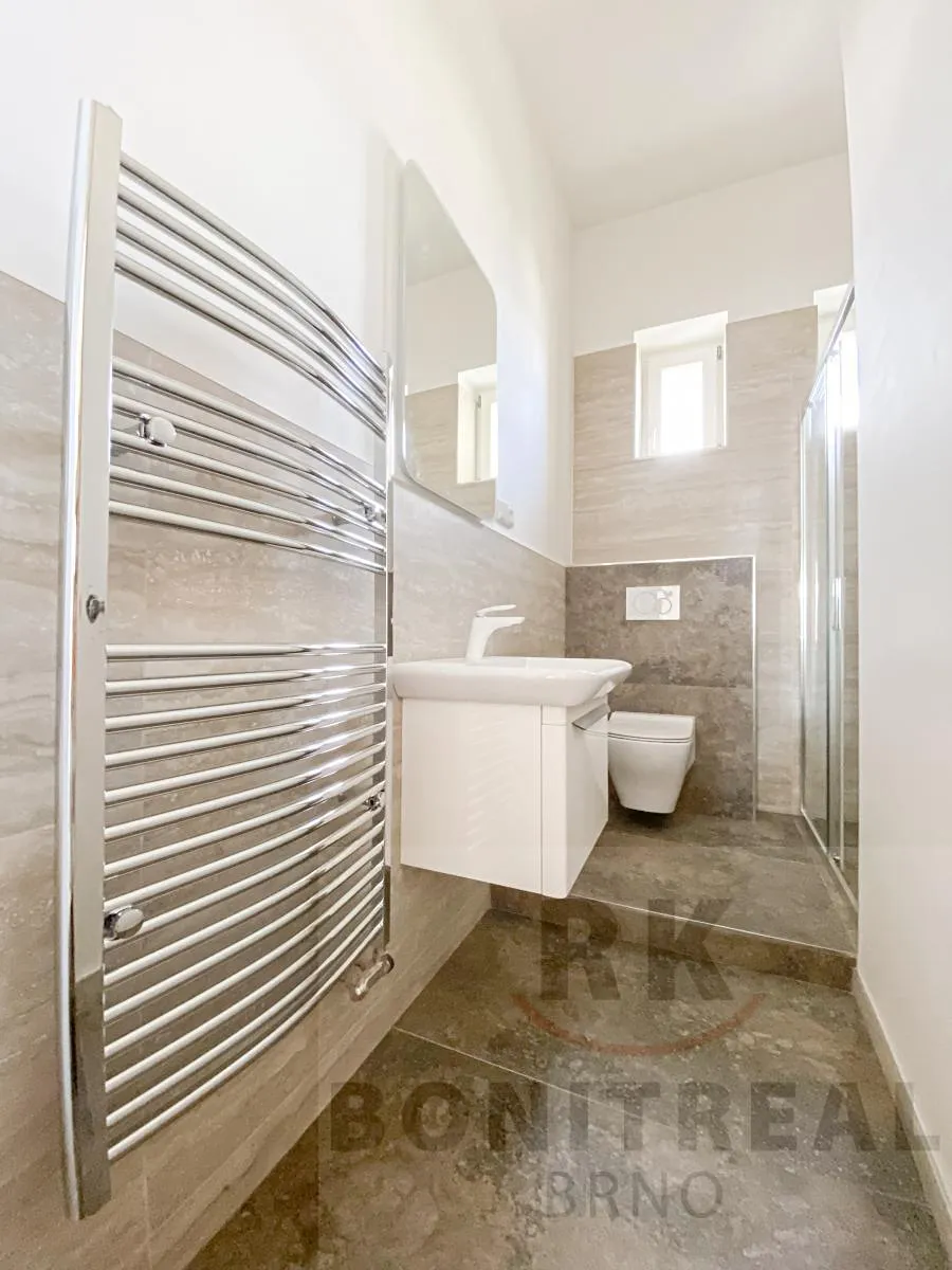Vybavení bytu bude následující - kuchyň. linka se spotřebiči - vestavěná lednice s mrazákem, myčka, trouba, varná deska, digestoř. Byt disponuje dvěma koupelnami, jedna se sprchovým koutem a toaletou, druhá s vanou, toaletou a bidetem. Vytápění a ohřev vody je řešeno novým plynovým kotlem, a také je v části jednotky podlahové topení na elektřinu.
