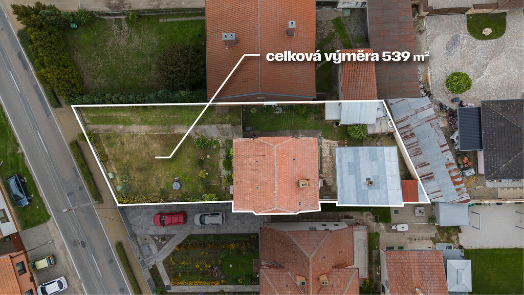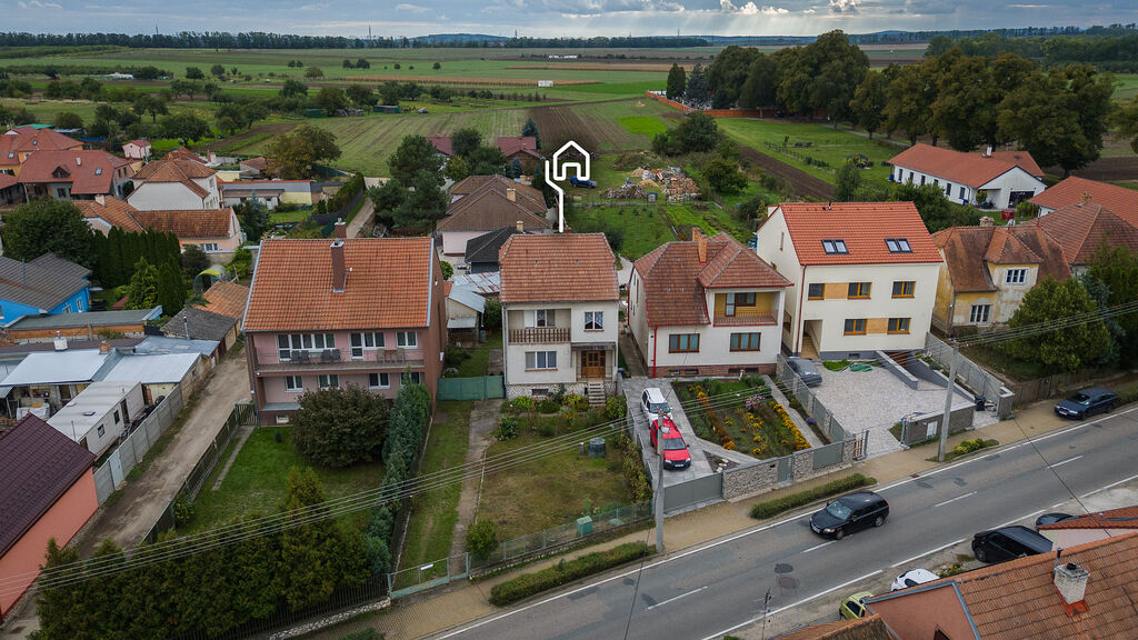 - V přízemí: kuchyně, prostorný obývací pokoj s možností propojení obou pokojů, samostatné WC, spíž, chodba se vstupem do sklepa a na zadní část pozemku.