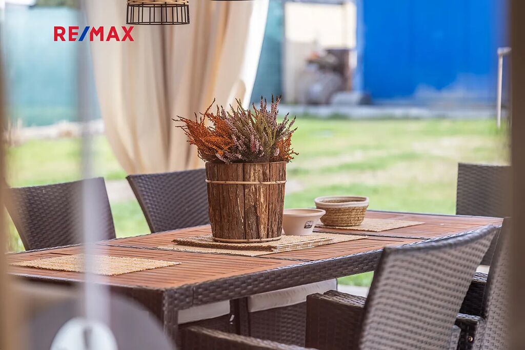 Součástí domu je také velká a zastřešená terasa, ideální pro relaxaci či posezení s přáteli – slunce si zde užijete od rána až do večera.