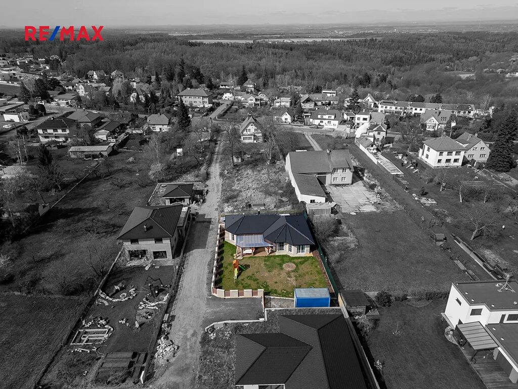 Dům se nachází v tiché slepé ulici, v klidné části obce s příjemnou atmosférou a blízkostí lesa – ideální pro procházky i sportovní aktivity. Jen kousek od domu staví autobus s přímým spojením na metro Háje (Praha), což výrazně usnadňuje každodenní dojíždění.