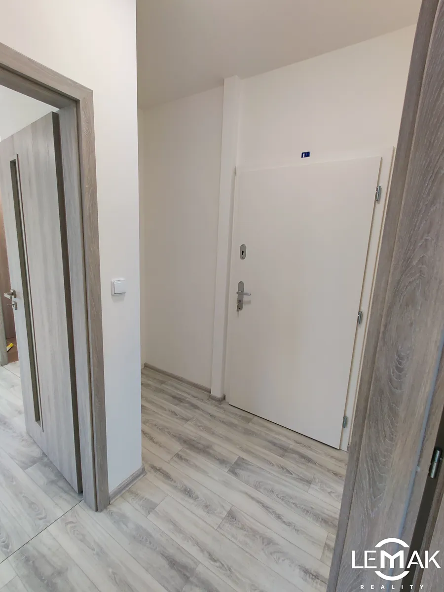 Samotný byt sestává ze vstupní chodby, 2 neprůchozích pokojů, obývacího pokoje s kuchyňským koutem, koupelny s vanou a samostatné toalety. Vstupní dveře do bytu jsou bezpečnostní a protipožární, podlahy kryje PVC, v koupelně a na toaletě keramická dlažba.