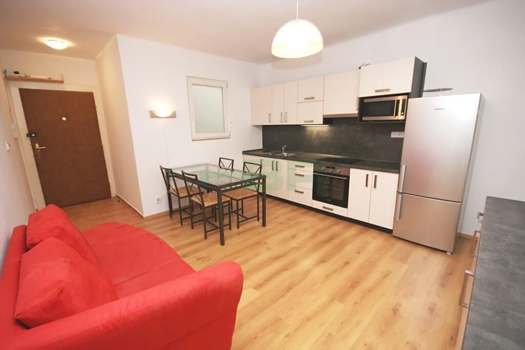 Nabízíme k pronájmu pěkný byt 1+1 37m2. Byt je částečně zařízený nábytkem. Byt se nachází v 6. patře s výtahem zrekonstruovaného domu. Kamerový systém, vstup přes čipy, rozsvícení světla na fotobuňku. Byt prošel náročnou a kompletní rekonstrukcí. Moderní kuch. linka s vestavěnými spotřebiči (varná deska, horkovzdušná trouba, lednice s mrazákem, mikrovlnka, pračka a myčka). Koupelna se sprch. koutem, toaleta samost. Krytina plovoucí podlahy, bezpečnostní dveře. Vytápěno infrazářiči na stěně, ohřev teplé vody el.bojlerem. Okna situovaná do vnitrobloku do klidu. K bytu náleží čistý a prostorný sklep. Výborná lokalita - 5 min na Flóru, tramvaj, bus, 15min do centra. Nájem 16.000,-Kč + služby 1.300,-Kč + elektřina 2.530,-Kč + internet 550,-Kč. Kauce 20.000,-Kč. Provize RK ve výši jednoho nájmu + DPH. K nastěhování od listopadu.