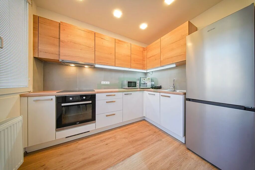 Prodej krásného, velice světlého, zrekonstruovaného bytu 3kk, 58 m2, v osobním vlastnictví, ve 2. podlaží panelového domu, v blízkosti (900 m) stanice metra Pankrác, ve skvělé lokalitě Prahy 4, Podolí, ulice Pujmanové. V bytě v r. 2023 proběhla rekonstrukce včetně vinylových podlah, zárubní, interierových dveří, vchodových dveří, rozvodů, štuků, topných těles, kuchyňské linky, koupelny a wc. Dále bylo instalováno nové osvětlení včetně podhledů v předsíni, koupelně a kuchyňském koutu. V bytě plastová okna. Orientace oken: obývací pokoj s kuch. koutem na západ do zeleně, 2x ložnice na východ do zeleně. Dům má 4. podlaží a je zateplený. Měsíční poplatky 5.661,-Kč včetně fondu oprav. V domě internet od Vodafone. Skvělá dostupnost, krásné okolí, cyklostezky a inline dráha podél Vltavy, kompletní občanská vybavenost.