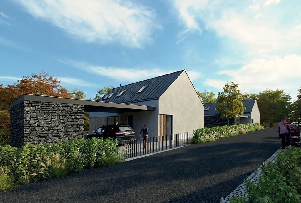 K domu náleží kryté parkovací stání s elegantním břidlicovým obložením, což je typický kámen pro místní krajinu a esteticky tak doplňuje celkový vzhled stavby. Součástí je také technická místnost, kterou lze využít k uskladnění sportovního vybavení a zahradní techniky nebo jako menší dílnu. Pečlivě upravená zahrada a okolní zeleň podtrhují příjemnou atmosféru tohoto moderního bydlení v souladu s přírodou.