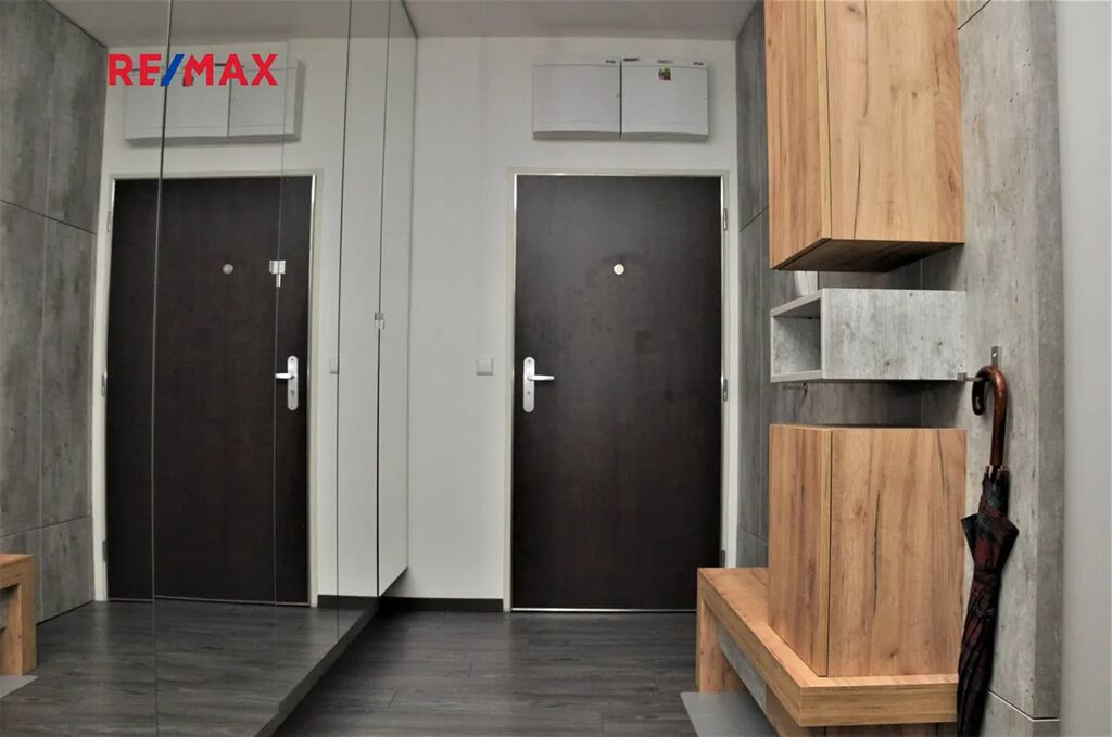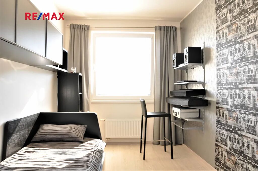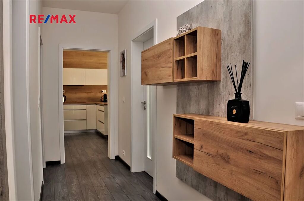 Byt má praktickou dispozici, je zařízen nábytkem na míru, kuchyně má veškeré spotřebiče včetně integrované pračky se sušičkou.