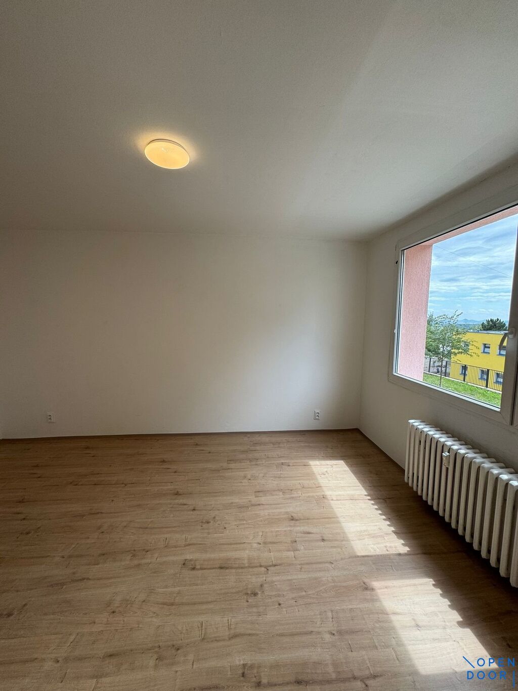 Byt nyní po kompletní rekonstrukci a disponuje velkou světlou místností a dále kuchyňskou linkou.