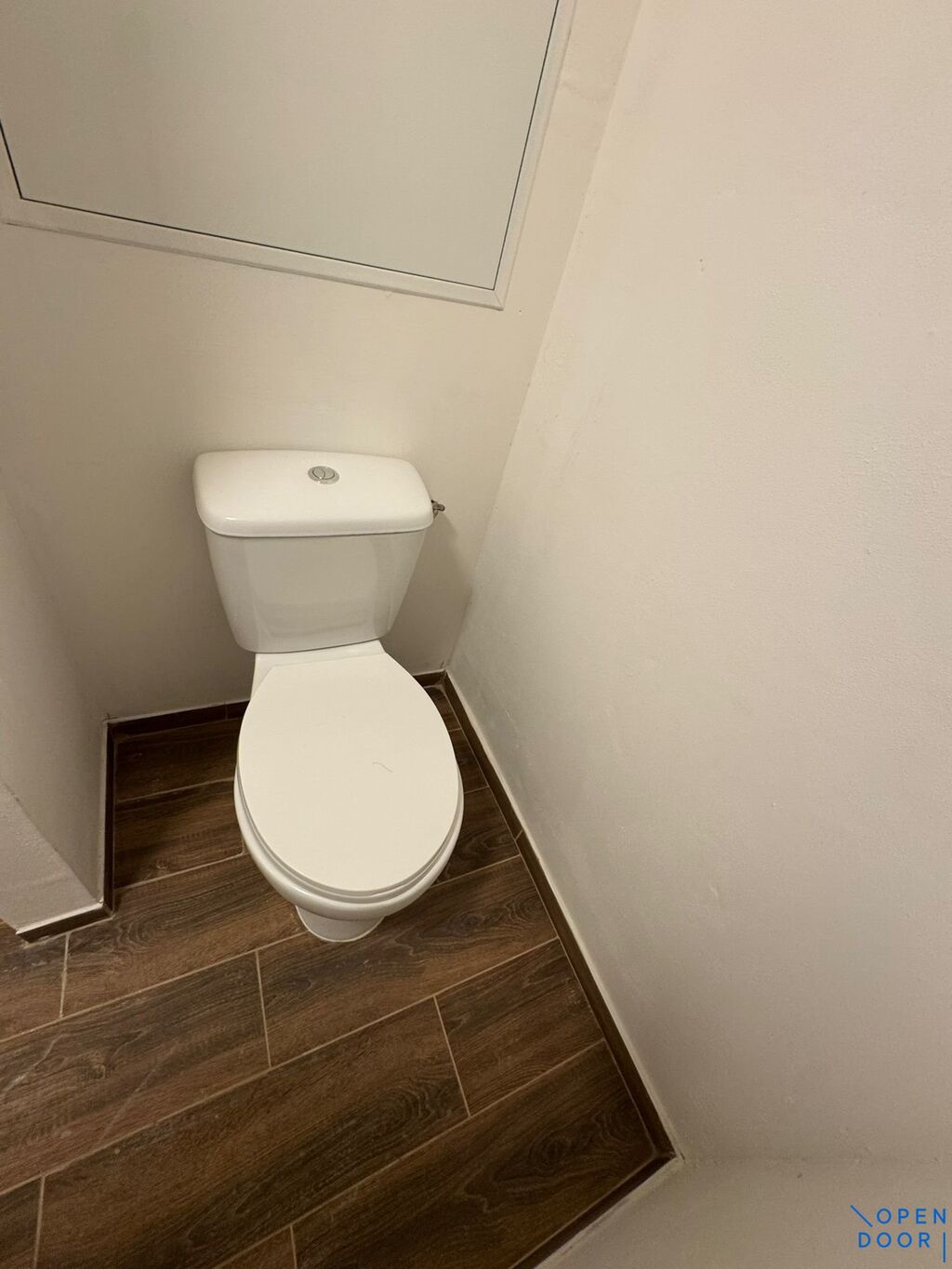 Na podlahách plovoucí laminátové podlahy v jednom dekoru, v koupelně keramická dlažba.