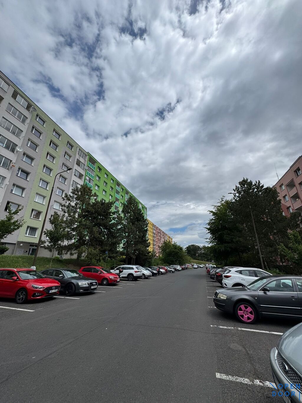Autobusové zastávky cca. 2-3 minuty pěší chůzí. Parkování před domem bez poplatku. Dostatek parkovacích míst po celý den.