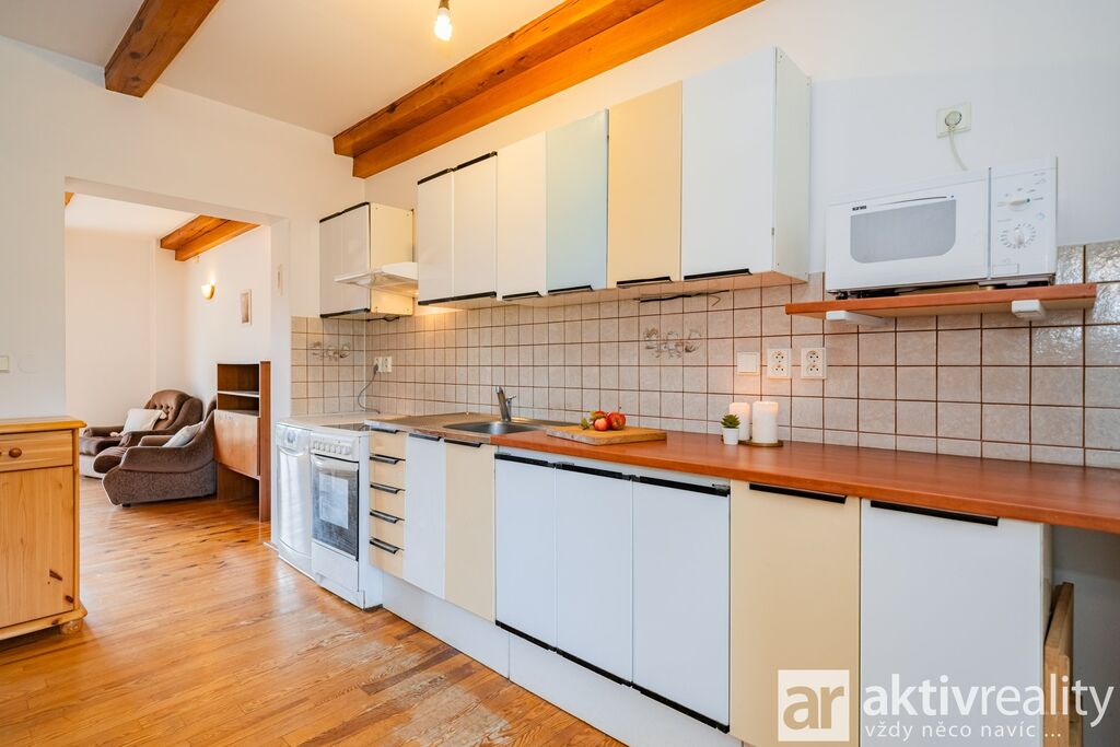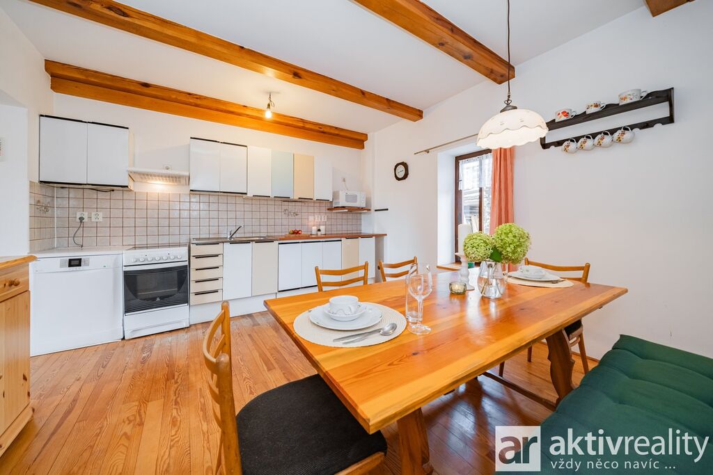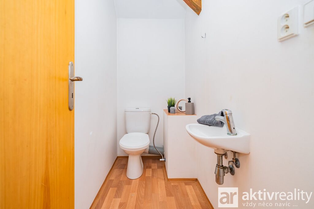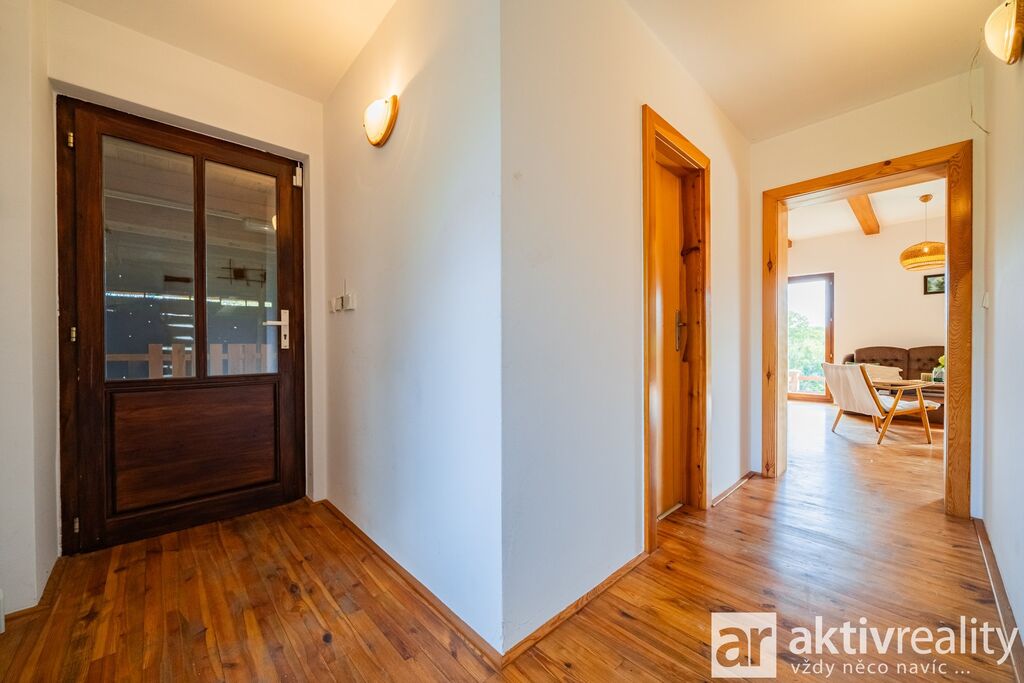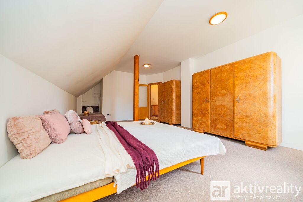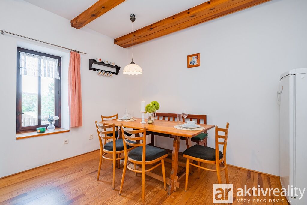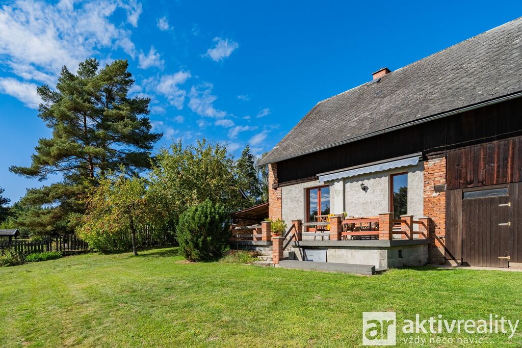 Prodej rekreačního objektu, který majitelé citlivě vestavěli do původní stodoly v obci Dobřeň na Kokořínsku. Okouzlí klidem, soukromím a opravdu velkou vlastní zahradou. Ve stodole navíc zbývá prostor pro další vestavbu či rozšíření stávající části, což je v této lokalitě vzácná možnost. Více podrobností o této nabídce najdete na webu viz video. Vestavba z roku 2006 stojí na vlastních pozemcích o rozloze více než 4 000 m². V přízemí je světlý obývací pokoj se dvěma francouzskými okny a přímým výstupem na jižní terasu, navazuje samostatná kuchyně s místem pro velký jídelní stůl a koupelna se sprchovým koutem, umyvadlem, WC a prostorem pro pračku či sušičku. Dřevěné schodiště vede do podkroví se dvěma prostornými pokoji a samostatnou toaletou. V suterénu je úložné zázemí a sauna. Do interiéru se vstupuje vraty přes stodolu, což hezky podtrhuje charakter místa. Slunná jižní terasa je podsklepená (další úložný prostor) a stíněná výsuvnou markýzou. Podél kratší strany navazuje velký přístřešek se vjezdem z příjezdové cesty a ohništěm s komínem. Zahrada se za terasou mírně svažuje do udržované zeleně s ovocnými stromy a částečně přechází do menšího vlastního lesíku. Na trávníku je připravené srovnané místo pro nadzemní kruhový bazén. Vestavba je z pórobetonových tvárnic se zateplením a s respektem k původní konstrukci. Vytápění zajišťuje krb s teplovzdušnými průduchy, v koupelně žebříkový radiátor. Voda je z obecního vodovodu, odpad sveden do jímky. Zabezpečení Jablotron, internet spolehlivě přes 5G (případně telefonní lince). Více podrobností o této nabídce najdete na webu viz video.