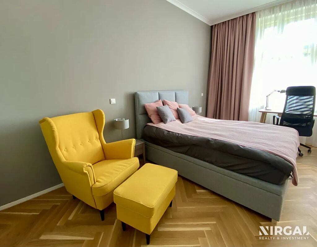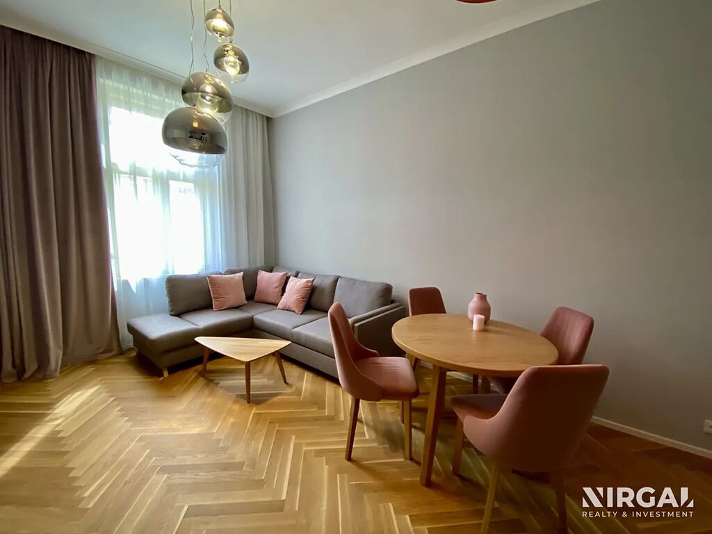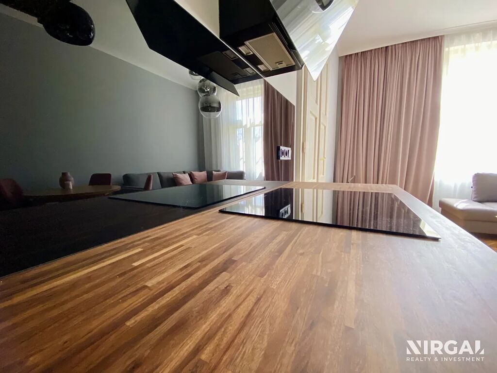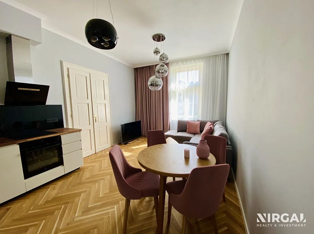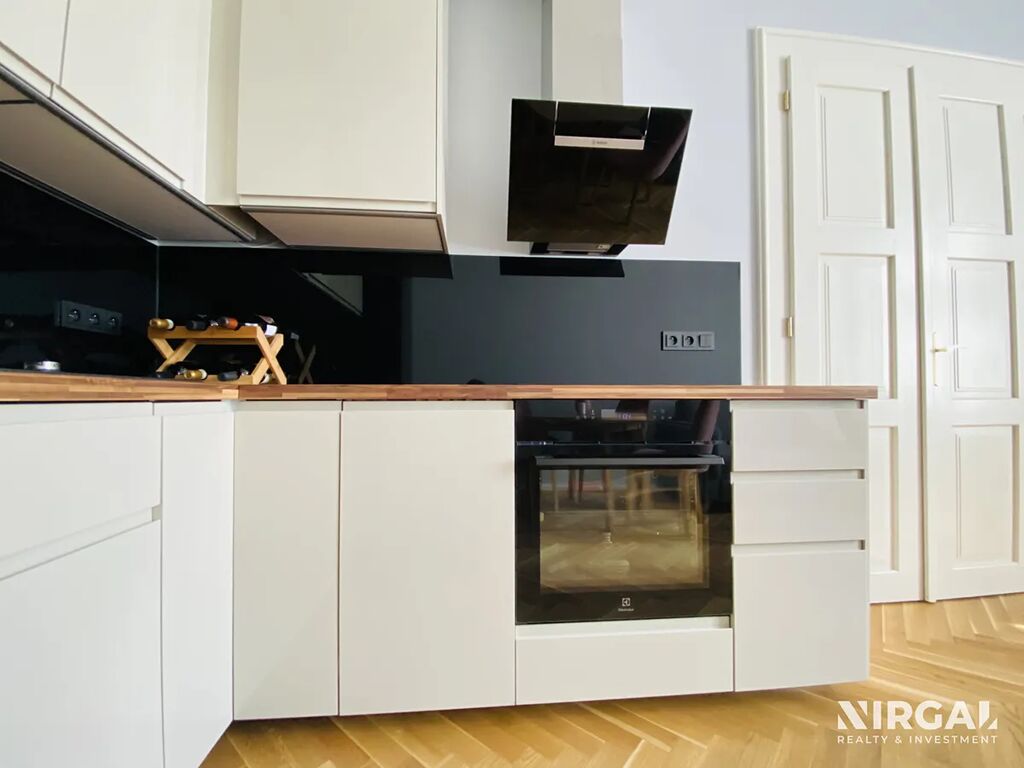 Byt je po kompletní rekonstrukci s důrazem na detail a kvalitu provedení – parketová podlaha s podlahovým vytápěním, vysoké stropy, elegantní design a moderní technologie.