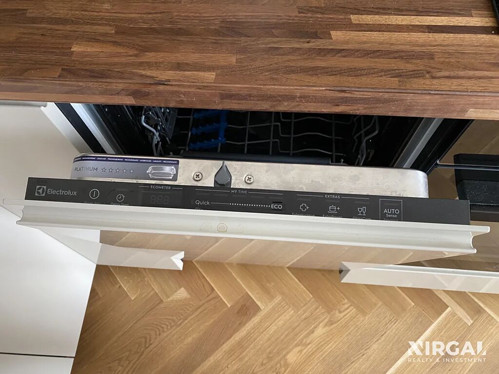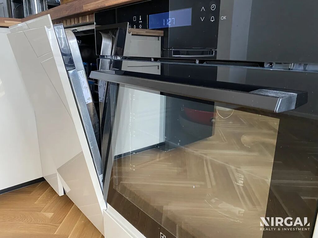 - prostorný obývací pokoj s plně vybavenou kuchyňskou linkou (lednice, myčka, trouba, varná deska, digestoř),