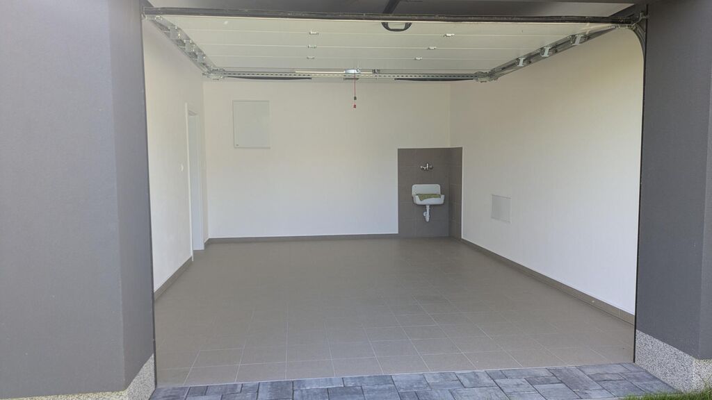 Z obývacího pokoje je výstup na venkovní terasu o velikosti 20 m2 a dále do zahrady domu, kde byly položeny travní koberce po celé ploše zahrady. Zahrada je také připravena k okamžitému využívání. Dům je postavený z kvalitních a moderních materiálů včetně velkoformátových obkladů všech 3 koupelen. Příjezdová komunikace je veřejná komunikace ve vlastnictví města, v letošním roce proběhne její kompletní výstavba včetně finálních povrchů.