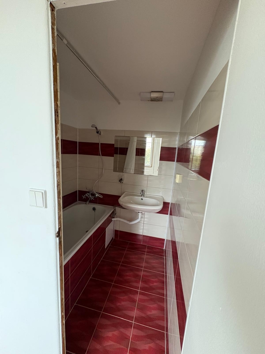 Byt se nachází v postupně rekonstruovaném domě, který je posazen kousek od centra. Byt s kuchyňskou linkou, sporákem, plovoucí podlahy v celém bytě, zděná koupelna s vanou. Po vstupu do bytu je předsíň se šatnou, prostorná kuchyň, obývací pokoj s balkonem, ložnice, koupelna, WC. Byt je bez vybavení, volný k nastěhování ihned. Velmi dobrá občanská vybavenost a dostupnost do centra. Doporučuji - levné dálkové vytápění oproti plynu, nízké náklady na bydlení.