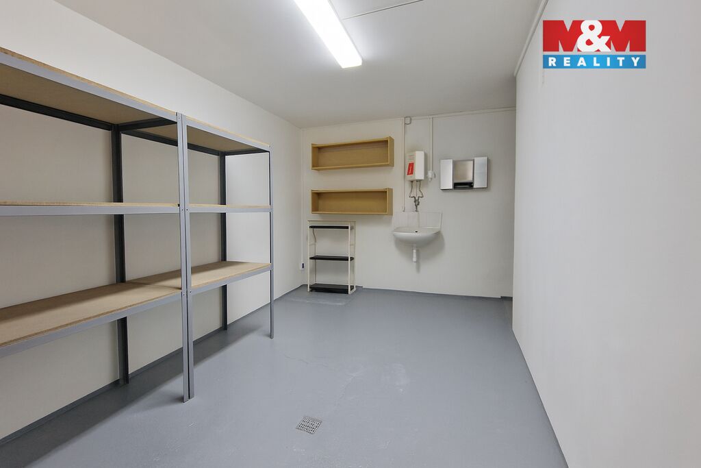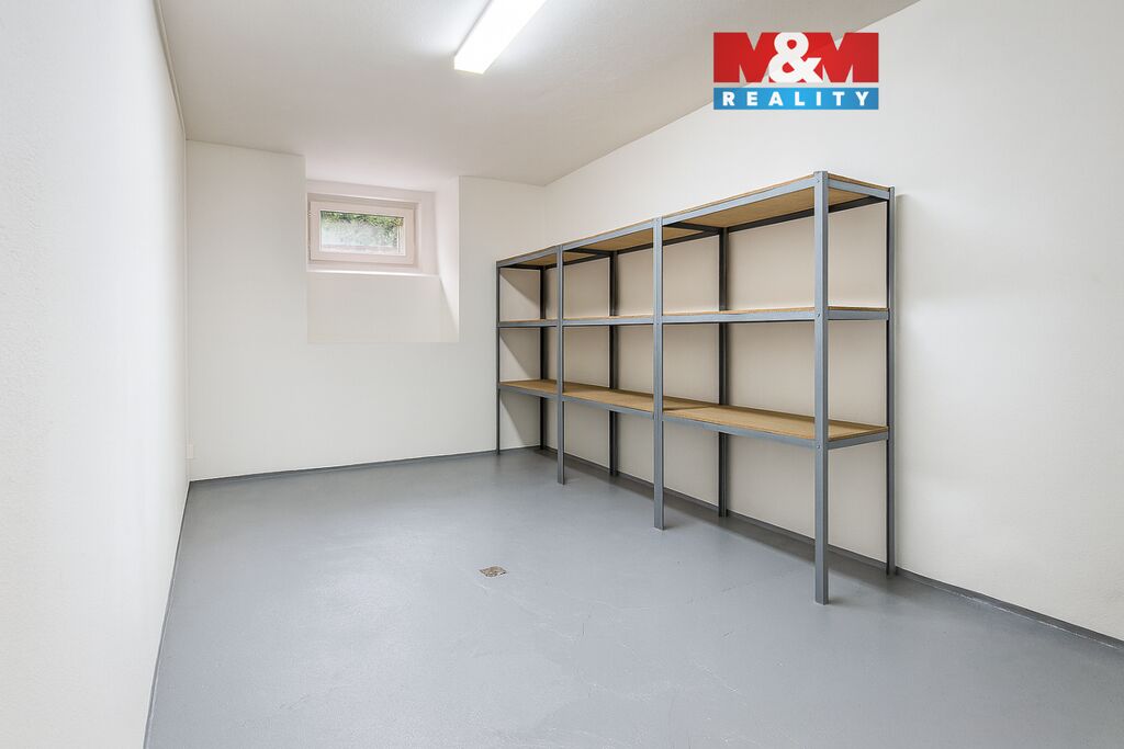 K pronájmu nabízíme udržovaný a suchý skladový prostor o velikosti 14 m², který se nachází v 1. podzemním podlaží domu. Místnost je ve velmi dobrém stavu, vybavená funkčním osvětlením i přívodem vody, což výrazně zvyšuje její praktičnost. Díky krovnímu okénku je zajištěn přirozený přísun kyslíku a možnost větrání, což je u skladovacích prostor velkou výhodou. Podlaha je opatřena odolným nátěrem, v místnosti je zabudovaný odtok a připravené regály poskytují dostatek úložného prostoru. Přístup je bezproblémový díky výtahu přímo v domě, k dispozici je rovněž společné sociální zázemí. Tento prostor je ideální pro uskladnění zboží, sezónních věcí, archivaci dokumentů či lehkou dílenskou činnost. Výhodou je čistota, snadná dostupnost a bezpečné umístění v domě, což z něj činí praktické a pohodlné řešení pro vaše skladovací potřeby.