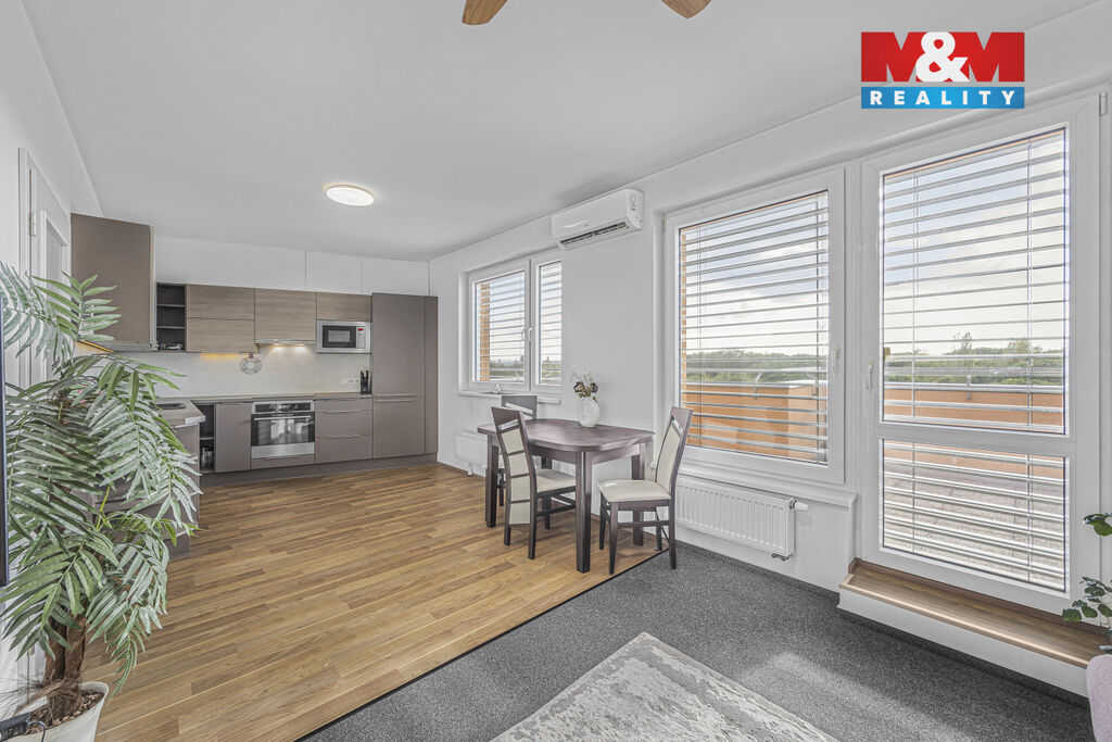 Nabízíme k prodeji moderní byt 3+kk o užitné ploše 59 m², situovaný v klidné části pražského Černého Mostu. Byt se nachází v posledním, 5. nadzemním podlaží cihlového domu z roku 2017 a nabízí krásný výhled z terasy o ploše 15 m². Součástí prodeje je také garážové stání a sklep. Byt disponuje kvalitní kuchyňskou linkou ORESI s vestavěnými spotřebiči značky Electrolux. Komfort obytných prostor zajišťují klimatizační jednotky v obývacím pokoji a ložnici, s venkovní jednotkou umístěnou na střeše. Všechna okna jsou vybavena elektricky ovládanými předokenními žaluziemi 90 Z. Nemovitost je ve velmi dobrém stavu a připravena k okamžitému nastěhování. Ideální volba pro ty, kteří hledají klidné bydlení s výbornou dostupností služeb.