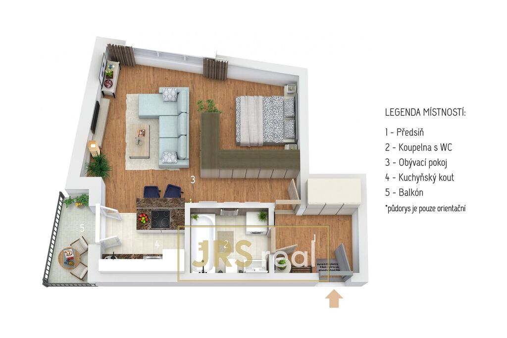 Ve výhradním zastoupení majitele Vám nabízíme k prodeji částečně vybavený byt 1+kk o velikosti 51 m², který se nachází ve 2. patře bytového domu v Hustopečích. Byt je dispozičně řešen tak, aby poskytl pohodlné a praktické bydlení. Za vstupními dveřmi je chodba, odkud se vlevo vstupuje do koupelny vybavené umyvadlem, otopným žebříkem, vanou, toaletou a pračkou. Z chodby je dále vstup do hlavní obytné místnosti, která je rozdělená na tři funkční části. První část tvoří spací zóna, další část je zřízená jako obývací prostor a poslední část jako kuchyně vybavená kuchyňskou linkou, lednicí a dřezem, digestoří, vestavnou troubou a sklokeramickou varnou deskou. V místnosti je klimatizace a okno s příjemným výhledem na město. Z obytné části je vstup na balkon, který nabízí klidné místo k posezení. Balkon je natolik velký, že nabízí možnost letního grilování. Hustopeče jsou oblíbené jihomoravské město známé vinařskou tradicí a příjemným prostředím. Byt je vhodný jak pro vlastní bydlení, tak jako investiční příležitost.