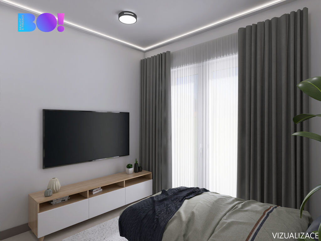V předsíni je vestavěná skříň připravená na pračku a sušičku, hned u vstupu do kuchyně praktický kumbál na úklidové potřeby a nad vstupem úložný prostor třeba na sezónní věci. Kuchyň je plně vybavena – myčka, trouba, varná deska, lednice i dřez. V ložnici je k dispozici prostorná vestavěná skříň. Zbylý nábytek, který je viditelný na vizualizacích nebude součástí bytu.
