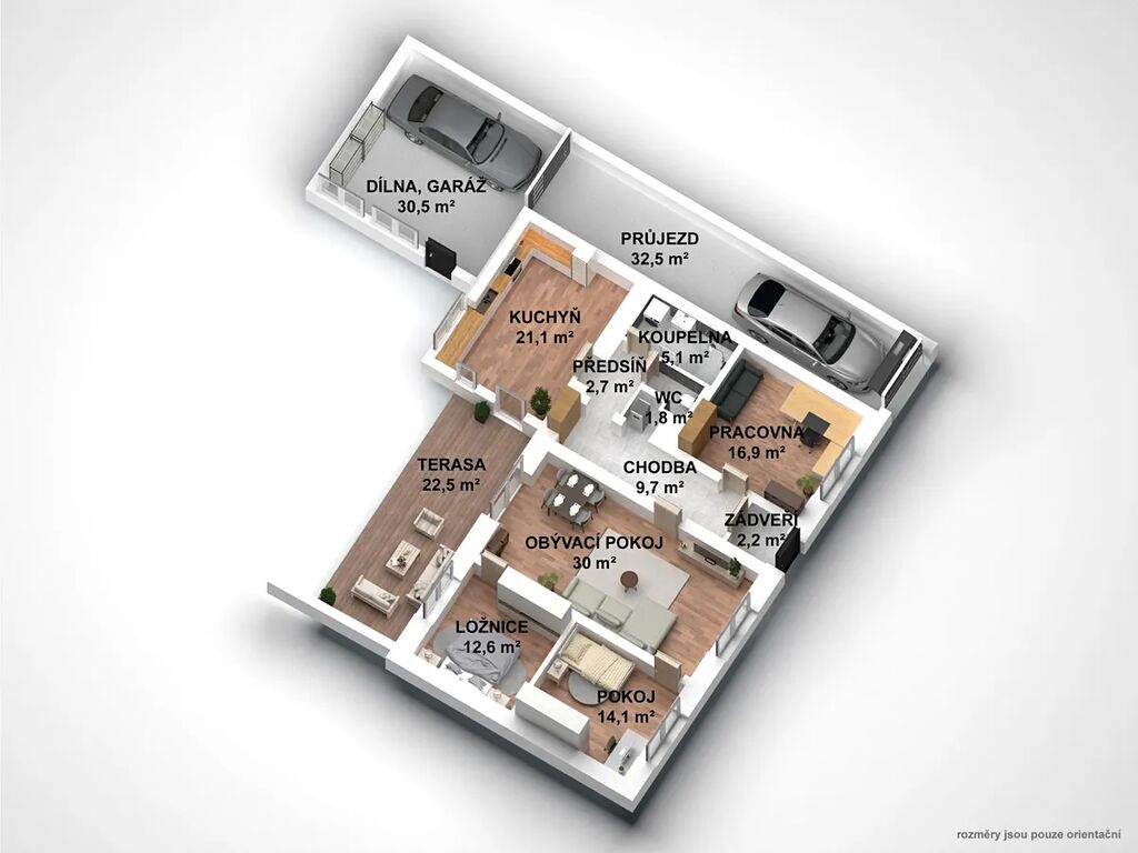 Dům je vybaven vším, co rodina potřebuje. K dispozici je velká garáž, do které zaparkujete až dvě auta. Na garáž volně navazuje prostorná dílna s ponky. Za domem je udržovaná zahrada, část zahrady je vyhrazena pro zeleninové záhony. Dům disponuje prostornou zastřešenou verandou, na kterou je šikovný vstup jak z kuchyně, tak i z obývací části. K dispozici je udírna.