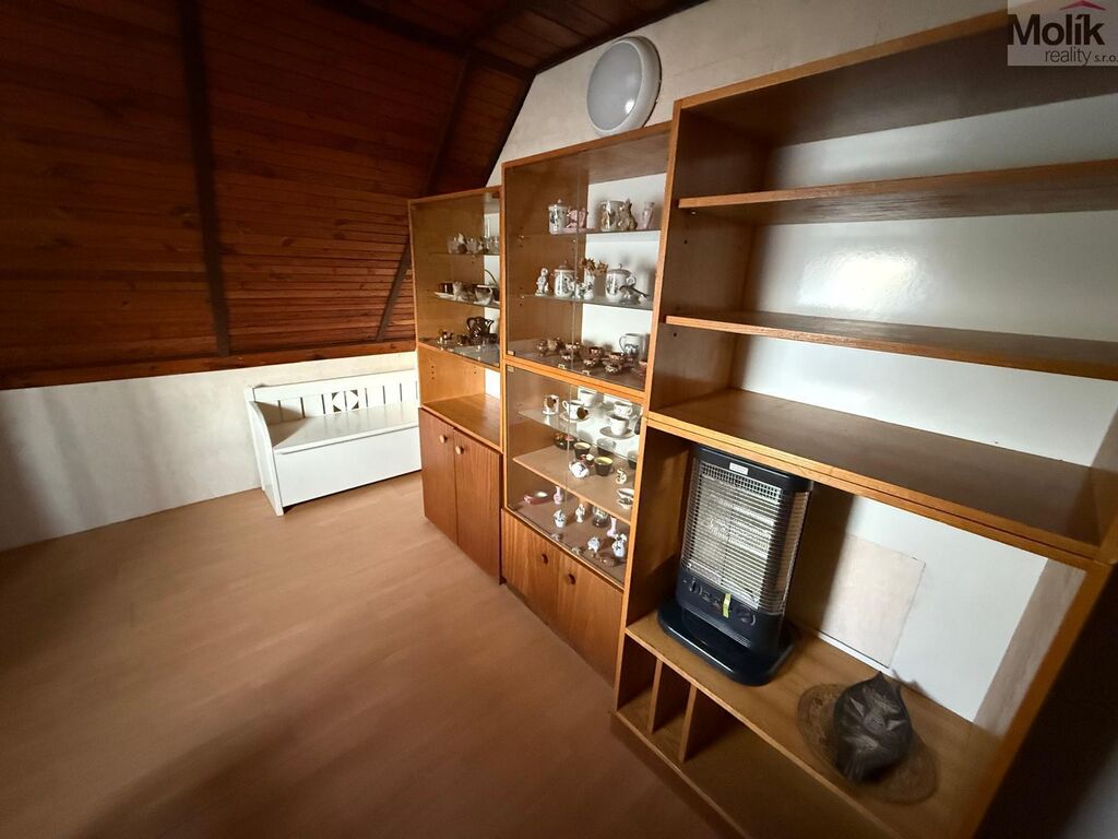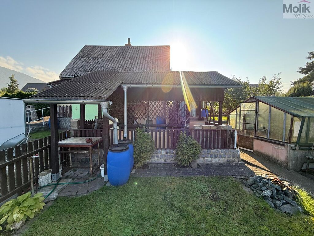 V patře je zřízené místo na spaní. Na pozemku je k dispozici také skleník.