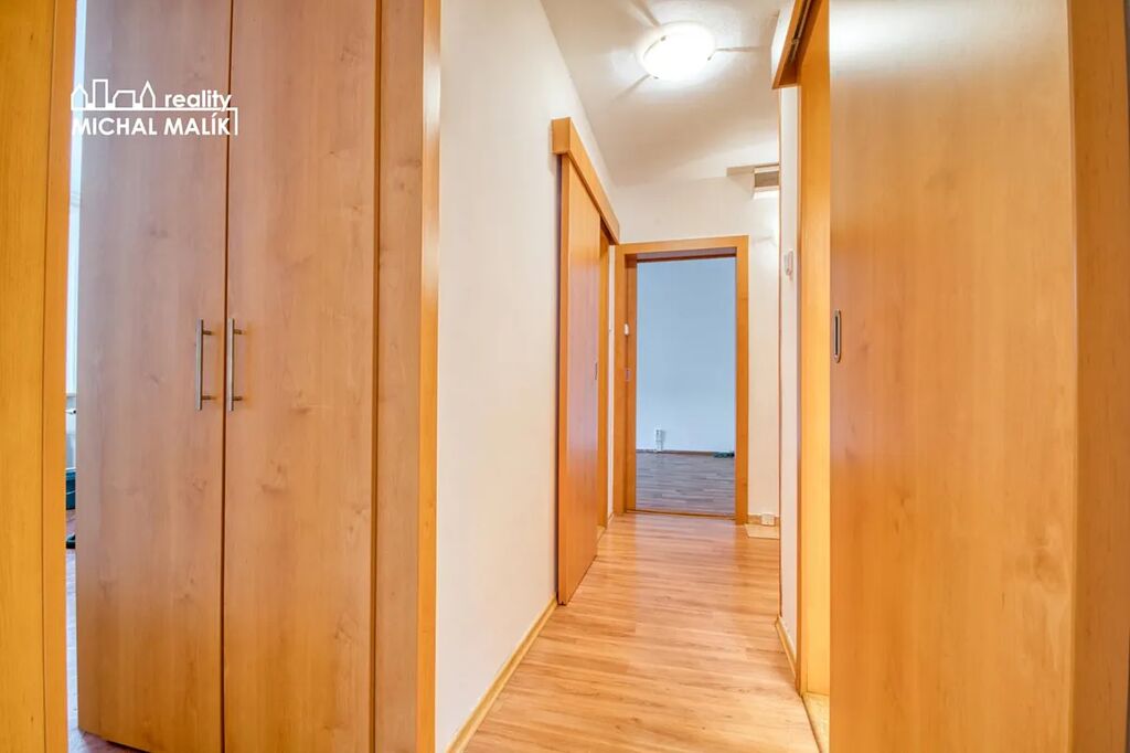 byt nabízí velké množství úložného prostoru díky vestavěným skříním: v dětském pokoji, v ložnici i na chodbě,