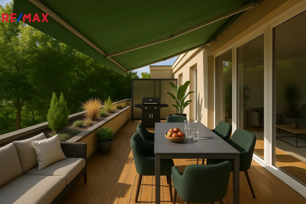 Byt o dispozici 4+1, 95m² v ulici Pod Skalkou kombinuje výhledy do zeleně s velkou terasou 20m² orientovanou na jih a vynikající dopravní dostupností.