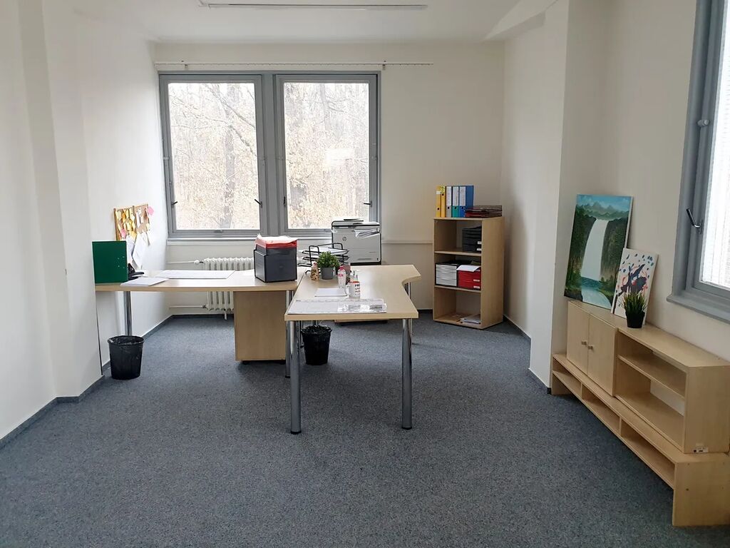 Pronájem souboru kanceláří v administrativní budově Office Park Zálesí nacházející se v zajímavé lokalitě na Praze 4 Braník. Kanceláře o velikosti 169 m2 se nacházejí v 2NP bez výtahu v samostatně uzavřené části, skládají se ze 4 samostatných kanceláří, chodby a prostorného openspace rozděleného skleněnou stěnou. V ceně nájmu jsou 2 parkovací stání na oploceném parkovišti u budovy zdarma, další parkovací místa 1.500,- Kč/měs. Ke kancelářím můžete využívat kuchyňský kout, sociální zázemí a recepci. Kanceláře jsou vybaveny koberci, žaluziemi a osvětlením, k dispozici je za poplatek internet. Nájemné 55.000,- Kč/měs bez DPH plus služby a energie 10.000,-/měsíc. Platba za energie a služby je konečná. Přístup do budovy 24/7, služby recepce 8-17 hod. Výborná dopravní dostupnost automobilem a také autobusem z metra Kačerov jezdí 5 linek v intervalu 4 minut. U této zakázky neplatíte provizi RK.