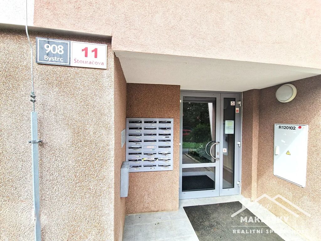 Nabízím Vám k prodeji byt v osobním vlastnictví v klidné, atraktivní lokalitě Brno - Bystrc, ulice Štouračova. Tento byt o celkové ploše 33m2 + balkón ( 6 m2) se nachází v pátém patře panelového domu s pěkným výhledem do zeleně. Byt je orientován na jihovýchod. Bytový dům má celkem 8 pater a v přízemí domu se nachází kolárna a vlastní sklep k bytové jednotce. Parkování zdarma přímo před domem a poblíž domu se nachází prostorné parkoviště s dostatkem míst.