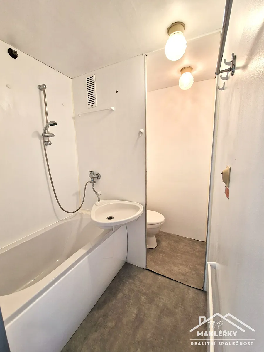 Bytová jednotka je v původním, zachovalém stavu. Elektřina: původní ( hliník), podlahy: beton - dlažba, linoleum, v obývacím pokoji byl koberec, který tam aktuálně není, pod kobercem jsou dřevěné parkety, Dále umakartové jádro polepené tapetou, v koupelně + toaleta- bílá malba, ( nová vanička, otáčecí umyvadlo, toaleta). Součástí bytu je kuchyňská linka s plynovým sporákem, ( nová baterie, digestoř, světlo).