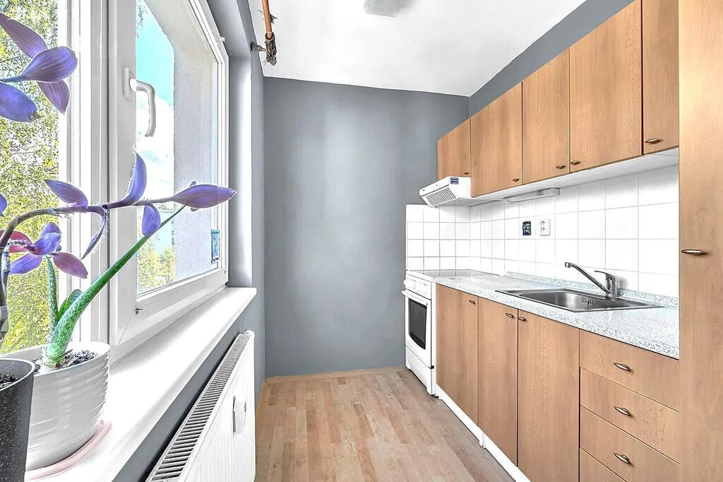 Je zde pěkná, malá kuchyňka s elektrickým sporákem. Lednice nebude součástí vybavení kuchyně.
