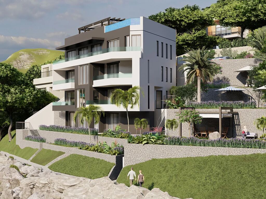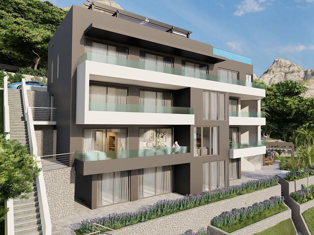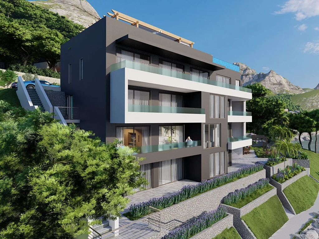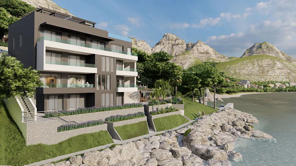 Dovolujeme si Vám nabídnout na prodej krásný nový  apartmán s panoramatickým výhledem na moře a ostrovy, který nelze nikdy zastínit, protože se nachází v první řadě u moře v letovisku Drvenik ve Splitské oblasti v Chorvatsku.