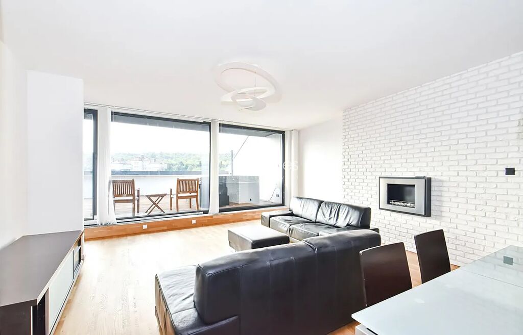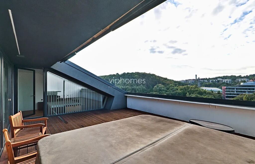 Nabízíme k pronájmu prostorově nadstandardní byt 4+kk, o rozloze 139m2, který se nachází v unikátním rezidenčním projektu z roku 2015. Tato architektonicky výjimečná budova je umístěná v zeleni, ve svahu mezi Malvazinkami a Radlickou ulicí. Rezidenci tvoří dva nezávislé rezidenční bloky propojené elegantní kovovou lávkou s parkem. Oba objekty vytvářejí v jejich centru dvoranu, která je přístupná majitelům i uživatelům bytů. Designové bydlení v kombinaci s perfektní dostupností a občanskou vybaveností.