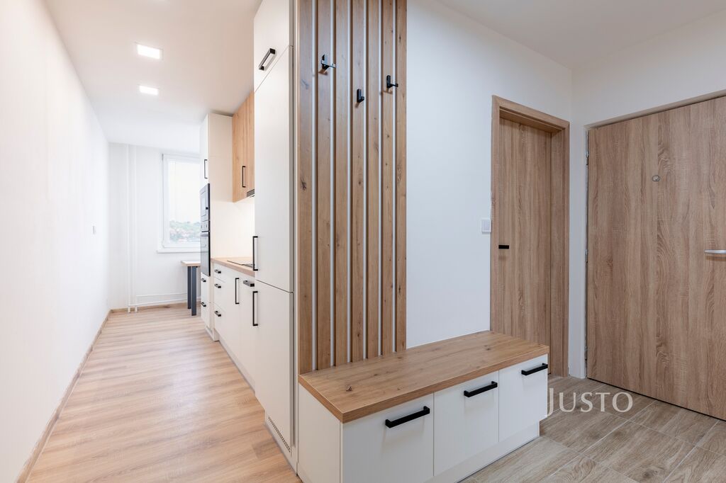 Dispozice bytu nabízí praktické rozdělení místností s dostatkem úložného prostoru, součástí je také sklep o ploše 2 m².