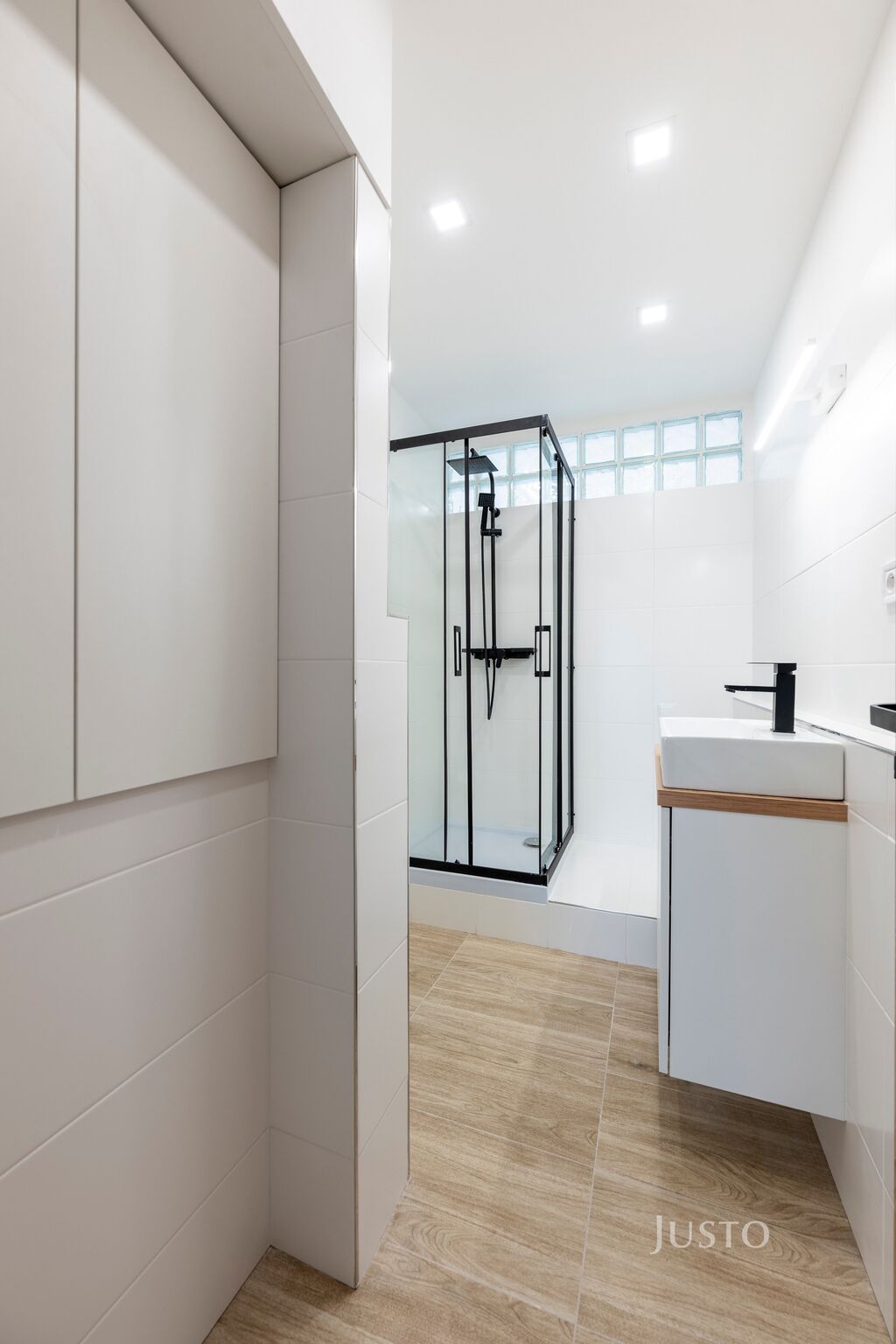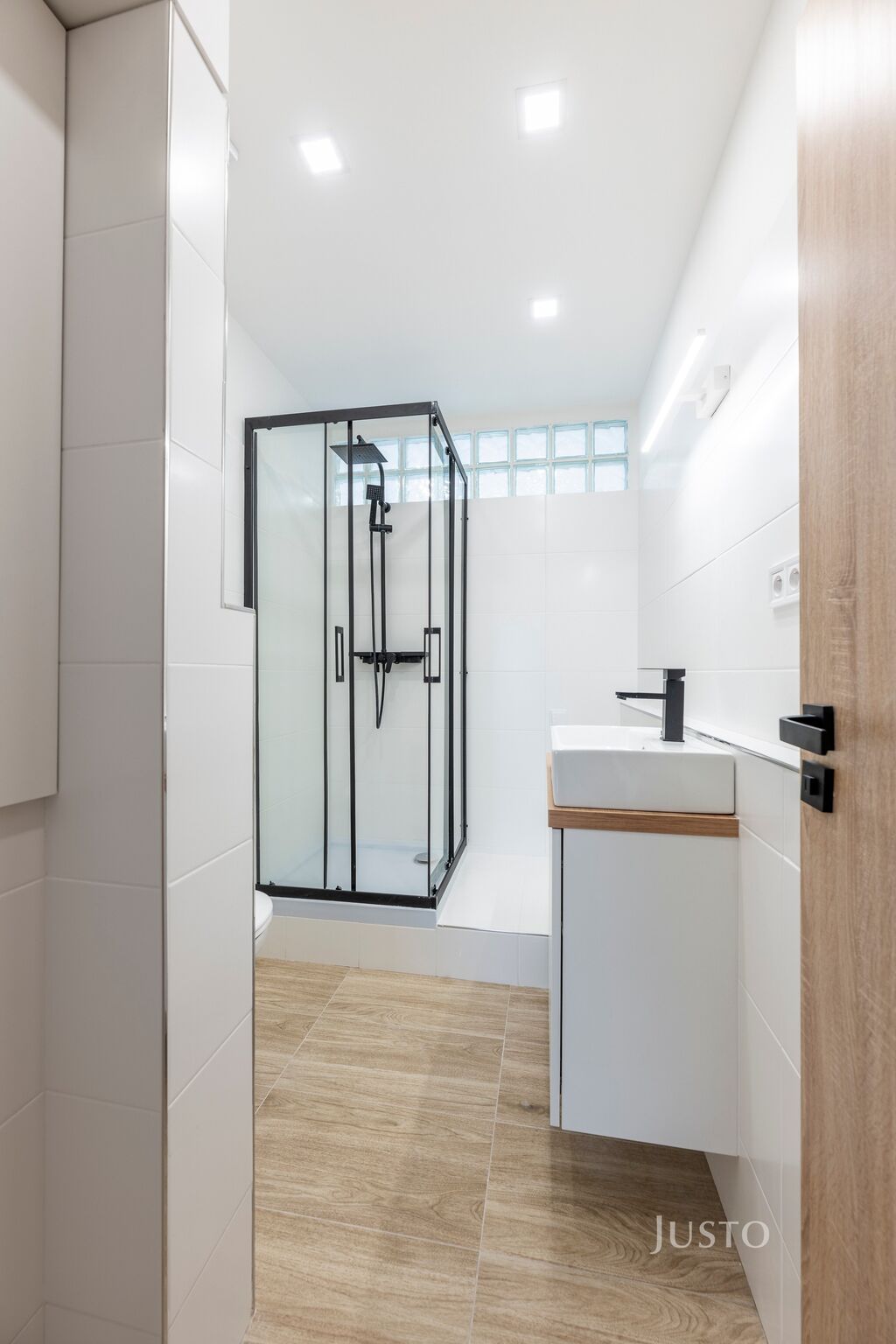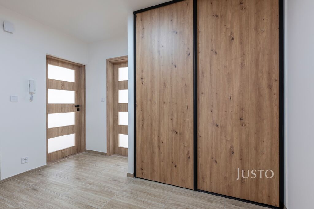 Vše laděno v příjemných neutrálních tónech s důrazem na funkčnost a čistý design. Plastová okna a zateplení budovy zajišťují nízké náklady na bydlení, energetická třída C – úsporná.