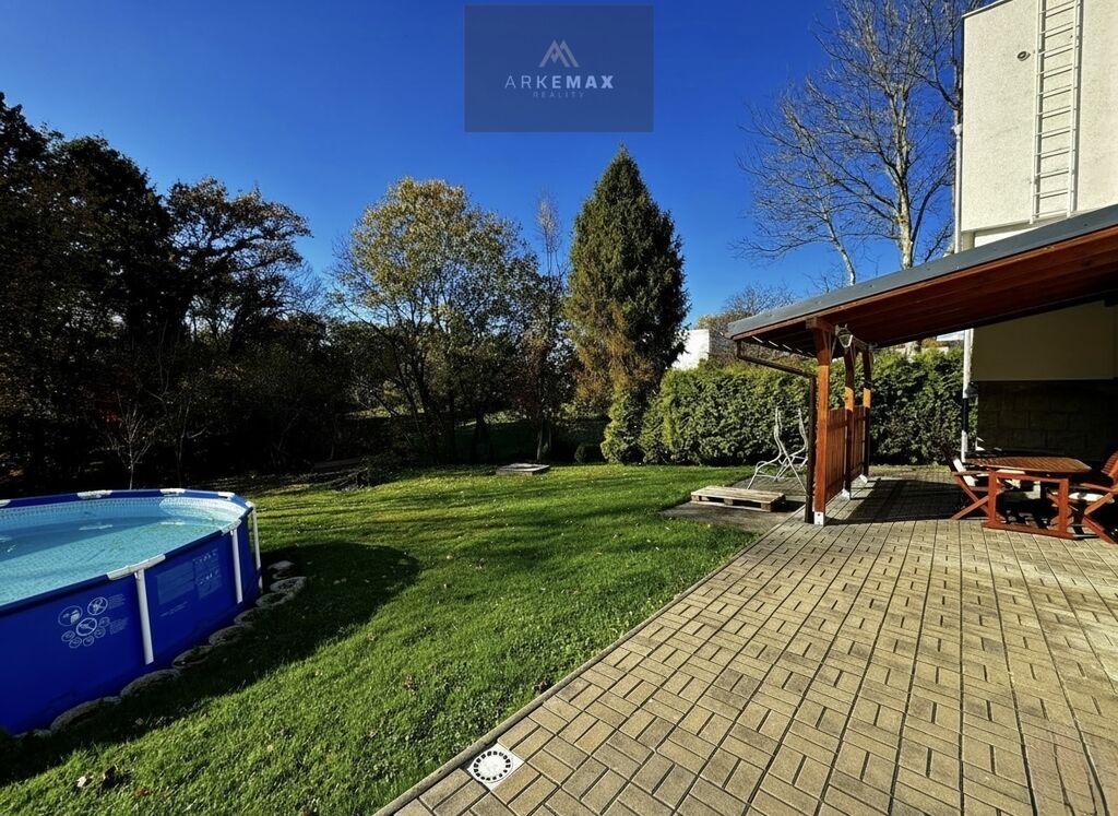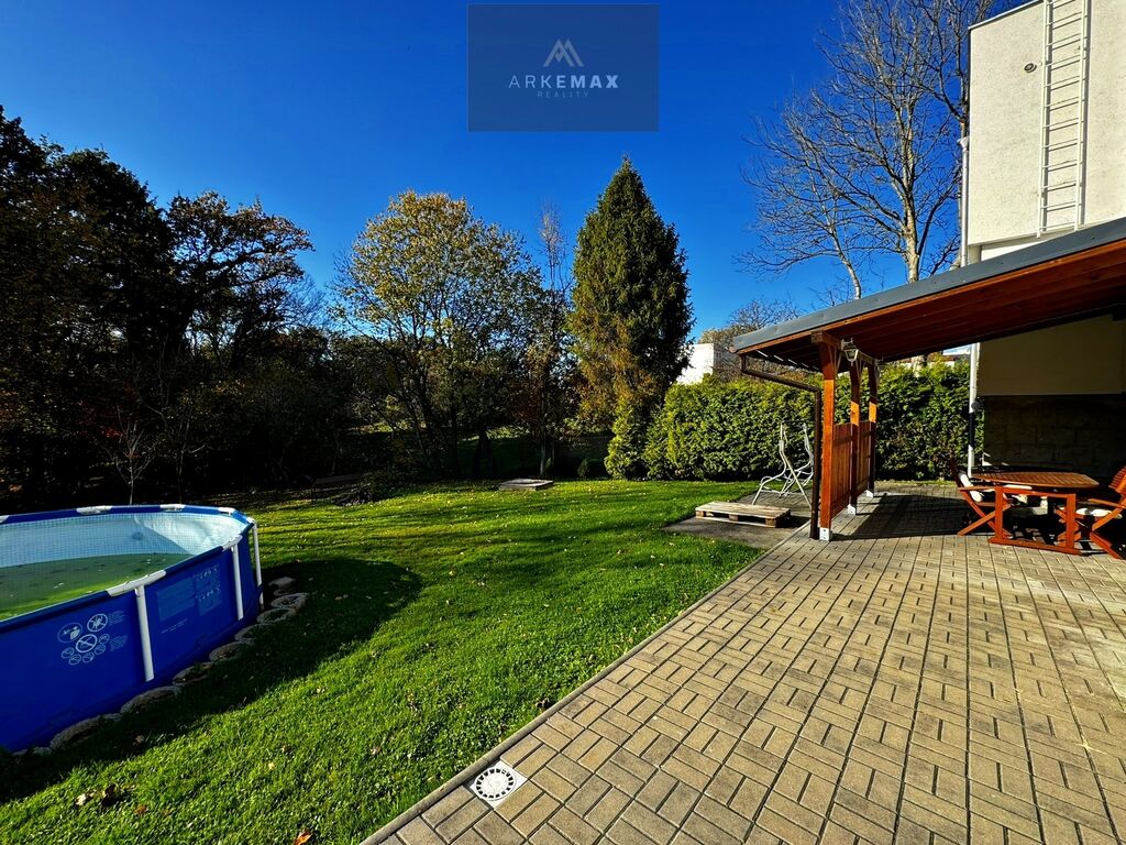 Zahrada má dostatek místa pro nový bazén, trampolínu, dětské hřiště, ohniště atd. Nejdůležitější je však klid a umístění zahrady. Jste obklopeni sousedy, o kterých ani nevíte. Les už je pouhou třešničkou na dortu.