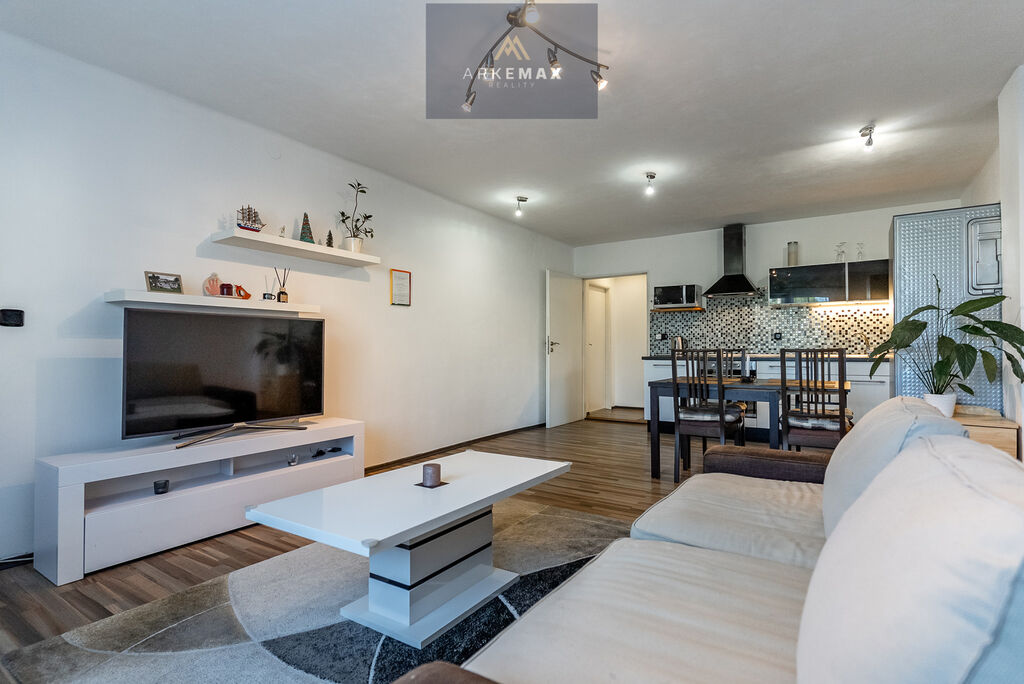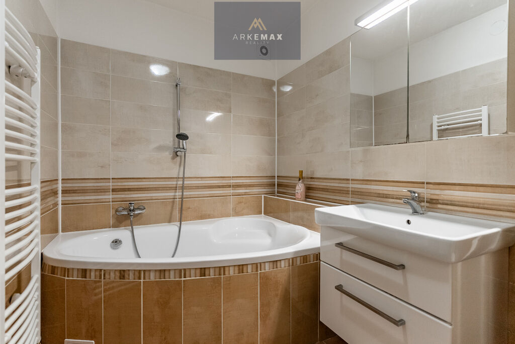 Z tohoto pokoje se dostanete na balkon, kde uvidíte celou zahradu za domem a les. Dále do obývacího pokoje spojeného s kuchyní o velikosti úctyhodných 28,5 m2. Z obýváku pak do ložnice o velikosti 13,5 m2 a s oknem orientovaným na jih. Dále přes chodbičku do koupelny a samostatného WC. Koupelna má plochu 5 m2 a je vybavena rohovou vanou.