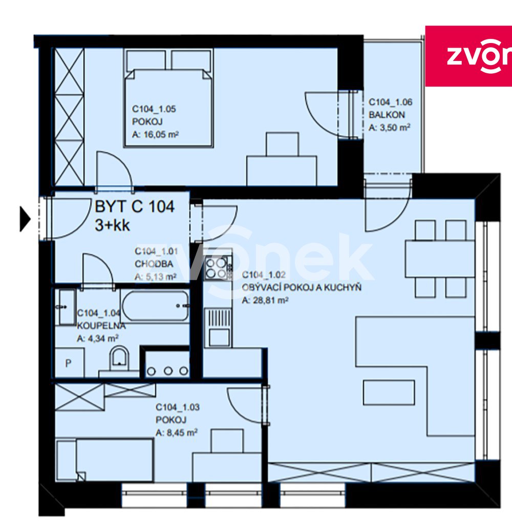 Chcete dostávat emailem podobné nabídky pronájmu bytů 3+kk v Zlíně?