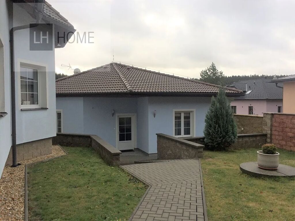 První dům 5+1, dvě samostatné koupelny, šatnu a pracovnu. V domě je prostorná jídelna s krbem a terasa směrem do zahrady k venkovnímu bazénu. Podlahová plocha domu je 340 m2. Vytápění tepelným čerpadlem. Venkovní bazén je vytápět solárním ohřevem.