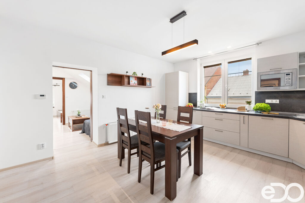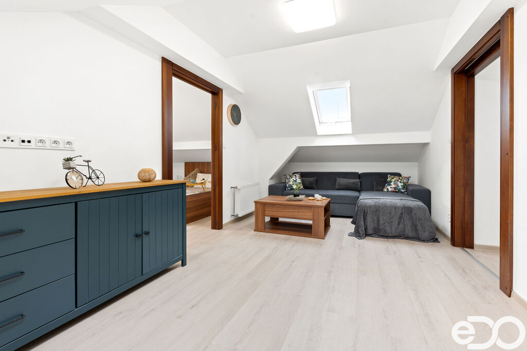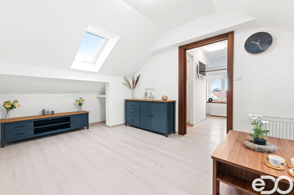 Nabízím ke koupi útulný podkrovní byt 3+kk o velikosti 55 m² s balkonem, po kompletní a promyšlené rekonstrukci z roku 2020, která byla navržena s důrazem na dostatek úložného prostoru. Byt se nachází ve 3. nadzemním podlaží menšího bytového domu v klidné části Smiřic.