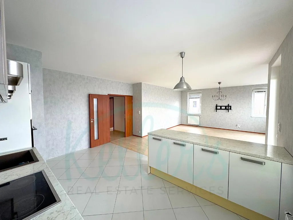 Byt zaujme především velkorysým obývacím pokojem o rozloze 46 m², který díky své orientaci na jihovýchod působí mimořádně vzdušně a prosvětleně. Na obývací část navazuje kuchyňská linka vybavená vestavěnou troubou, sklokeramickou varnou deskou, digestoří, myčkou a mikrovlnnou troubou. Z obývacího pokoje je vstup na prostorný balkon s příjemným výhledem do okolí.