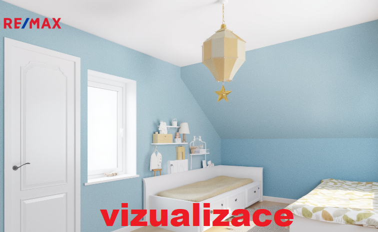 Podkroví: přístup po otevřeném dřevěném schodišti, dva samostatné pokoje (z jednoho vstup na balkon), šatna, WC a komora.