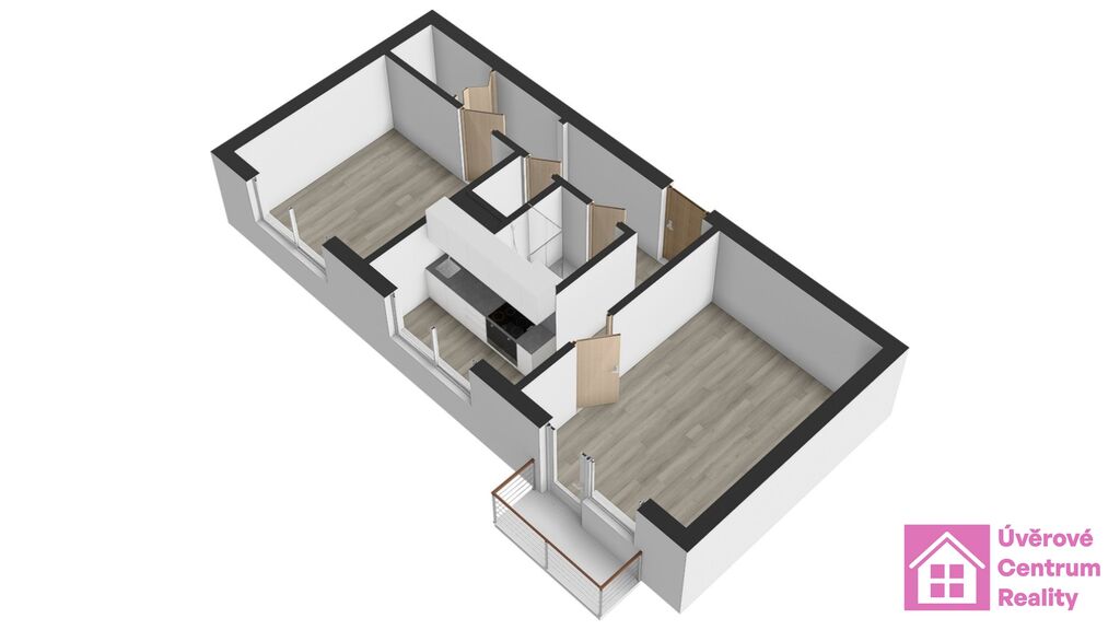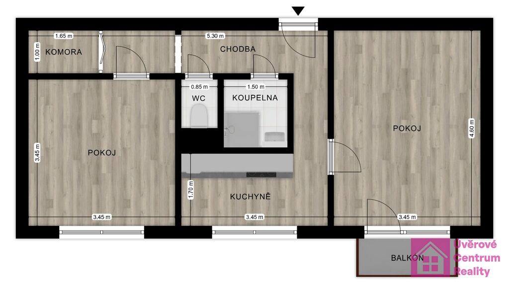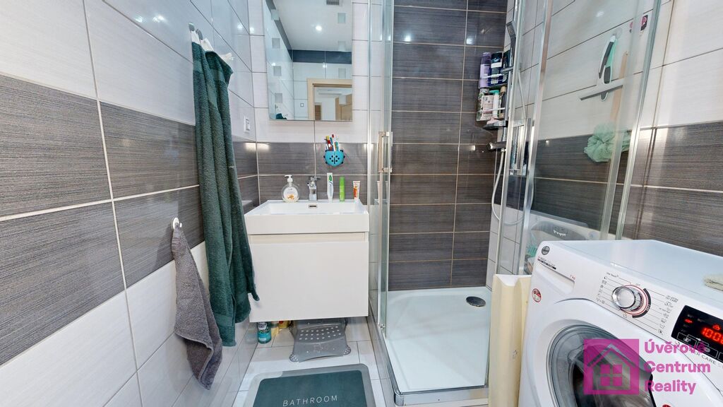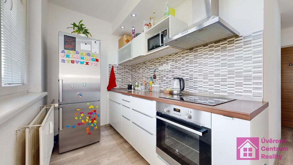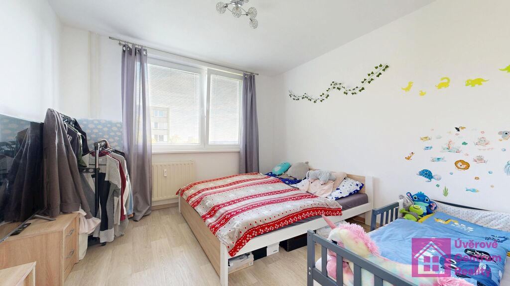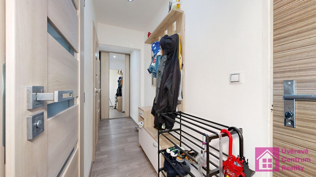 Dispozice bytu: chodba s komorou, koupelna s umyvadlem a sprchovým koutem, samostatná toaleta, kuchyně a 2 neprůchozí pokoje.