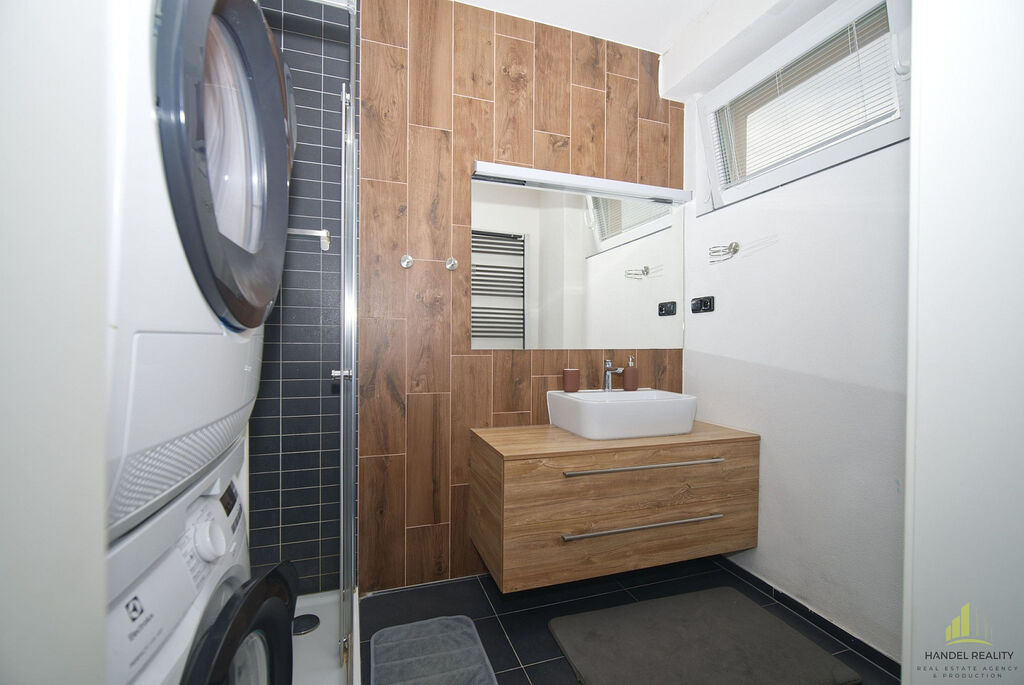 Nemovitost prošla v roce 2021 kompletní rekonstrukcí podle návrhu architekta, což se odráží na celkové funkčnosti i estetice bytu. Samotná plocha bytu (bez balkonu a sklepa) činí 42,9 m². Obývací pokoj s kuchyňským koutem je prostorný a díky dvěma oknům velmi světlý. Ložnice je sice menší, ale pohodlně se do ní vejde manželská postel i šatní skříň. Koupelna nabízí dostatek místa – kromě sprchového koutu je zde také pračka a sušička. Toaleta je samostatná. Součástí bytu je balkon o velikosti 1,9 m², který je chráněný průhlednou stříškou, a bezpečnostní vchodové dveře s trny proti vysazení.