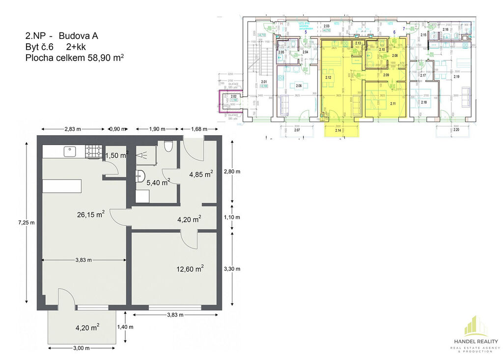 Nabízíme krásný byt 2+kk k prodeji v Břeclavi. S plochou 60,8 m² poskytuje dostatek prostoru pro pohodlné bydlení pro jednotlivce nebo pár. Byt se nachází v 2. NP a disponuje moderním a útulným interiérem, je také vybaven vlastní klimatizací, tím zajistí příjemné a komfortní prostředí po celý rok. Součástí jednotky je i galerie a terasa o velikosti 4,2 m². K bytu přináleží kóje s vlastní přípojkou elektřiny.