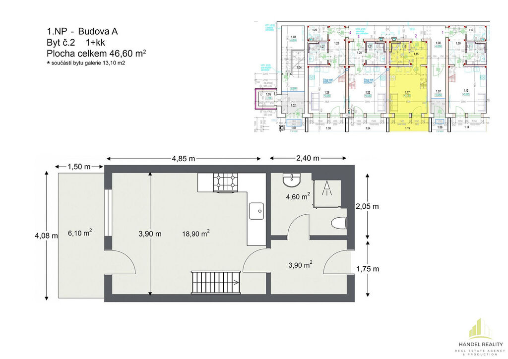Nabízíme krásný byt 1+kk k prodeji v Břeclavi. S plochou 46 m² poskytuje dostatek prostoru pro pohodlné bydlení pro jednotlivce nebo pár. Byt se nachází v přízemí a disponuje moderním a útulným interiérem, je také vybaven vlastní klimatizací, tím zajistí příjemné a komfortní prostředí po celý rok. Vzhledem k výšce stropu, která činí 4,5 m na bytu naleznete i galerii, která je určená například pro vybudováno ložnice. Dále byt disponuje terasou o velikosti 5,5 m². K bytu přináleží kóje s vlastní přípojkou elektřiny.