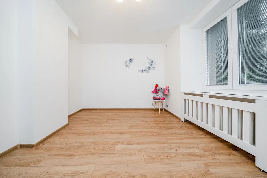 Byt prošel v letech 2017 až 2022 nákladnou rekonstrukci a byl obýván minimálně. V části bytu jsou nové rozvody elektra, podlaha je pokrytá dlažbou, plovoucí podlahou a kobercem. V chodbě a ložnici se nacházejí prostorné, vestavěné šatní skříně. Jsou zde sádrové omítky (s vyjimkou ložnice), nové dveře i zárubně.V části bytu jsou snížené stropy se zabudovaným osvětlením. Jádro je zděné. Koupelna je v moderních obkladech, s sprchovým koutem a umyvadlem. Toaleta je samostatná. Vedle toalety je zděná komora. Dominantou bytu je prostorná kuchyně s linkou na míru a vestavěnými spotřebiči (indukční varná deska, myčka, digestoř, varná trouba – vše Electrolux. Lednice je značky LG). Kuchyně je opravdu prostorná, s velkými úložnými prostory a stolem. Kuchyni od obývacího pokoje odděluje ostrůvek. Obývací pokoj je prostorný a je průchozí s ložnicí. Dětský pokoj je samostatný. V chodbě a kuchyni se nachází velkoformátová dlažba. Byt je laděný do světlých, moderních tónů. V chodbě je dostatek prostoru, který byl využit na vestavěnou šatní skříň i botník. K bytu patří prostorný, zděný sklep.