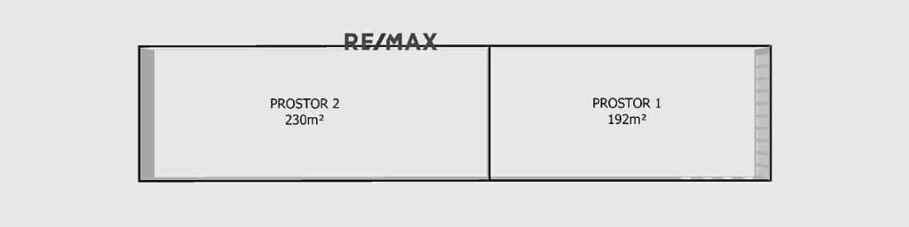 Jednotka je součástí prostoru o celkové výměře 420m², v současné chvíli je oddělena příčkou a navazuje přímo na úroveň venkovní manipulační plochy monitorované kamerovým systémem. Obě jednotky mají samostatný vchod a sekční vrata.
