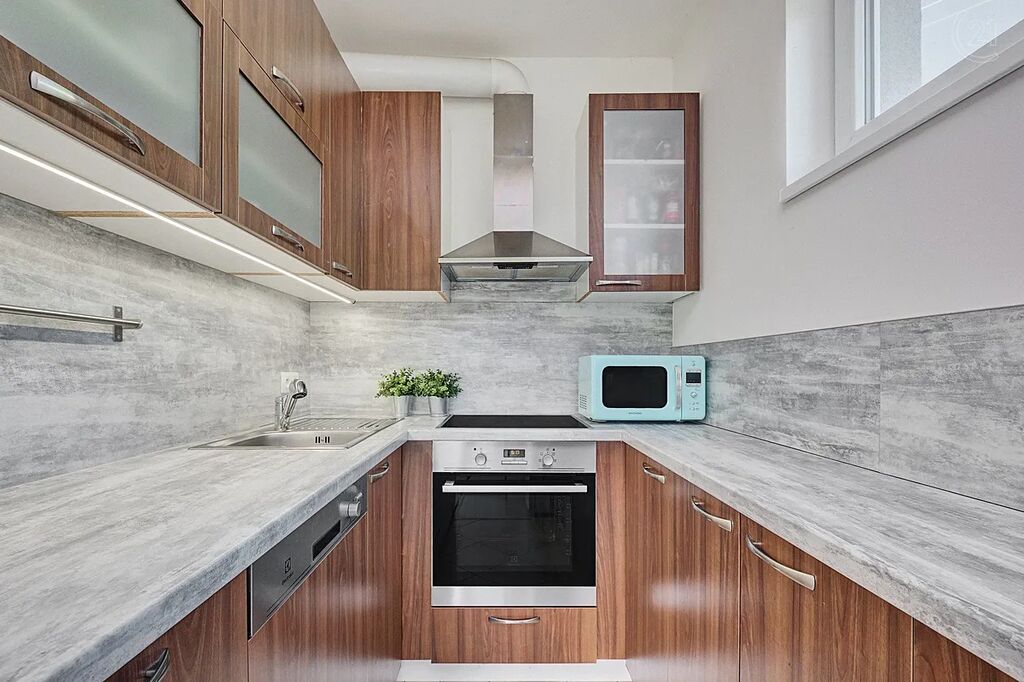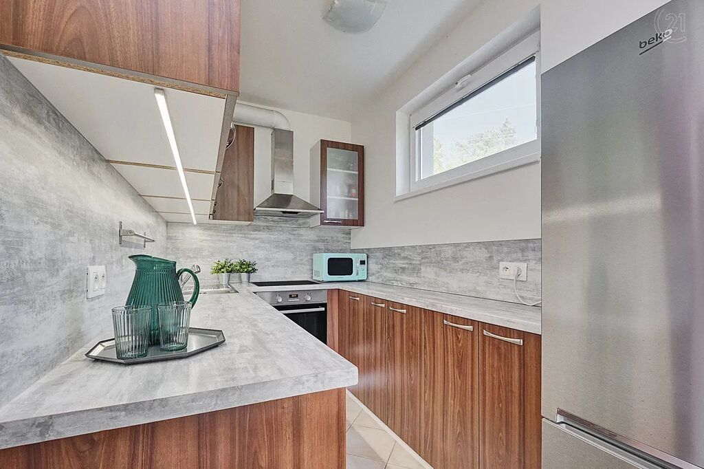 Tento byt se nachází na přízemí zděného domu o čtyřech podlažích a nabízí dva prostorné pokoje s vestavěným nábytkem. Oceníte i moderní vybavenou kuchyň a nebo prostornou koupelnu s vanou.
