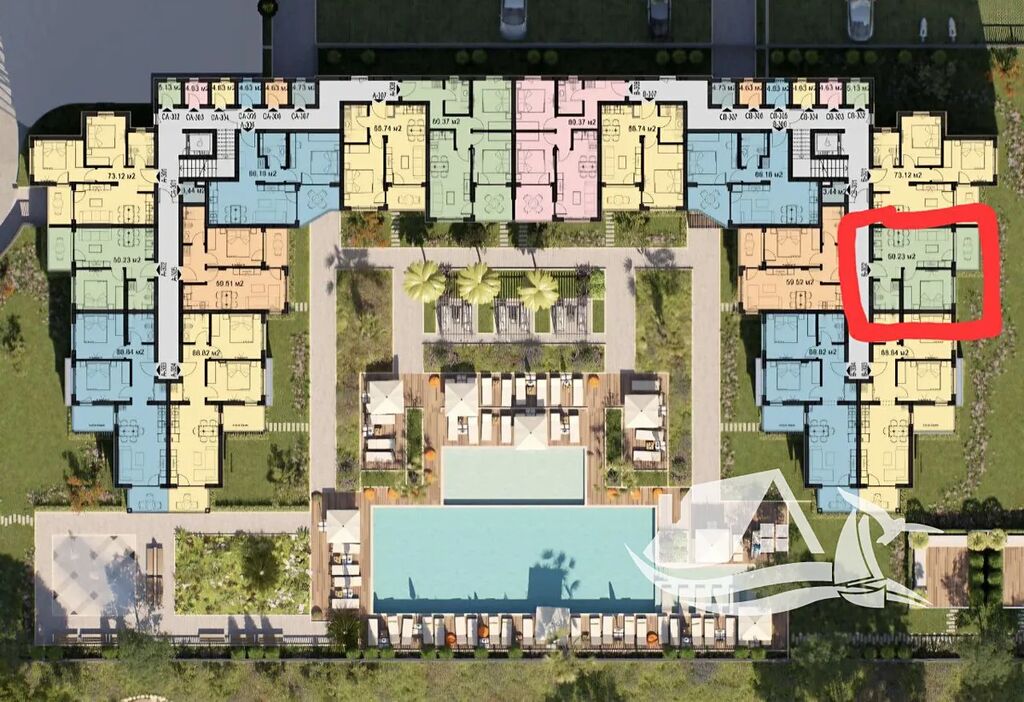 Areál se rozprostírá na 4 270 m² a zahrnuje 94 apartmánů, obklopených zelení a stylovou krajinářskou úpravou.